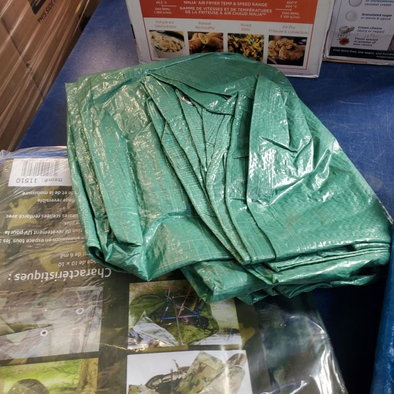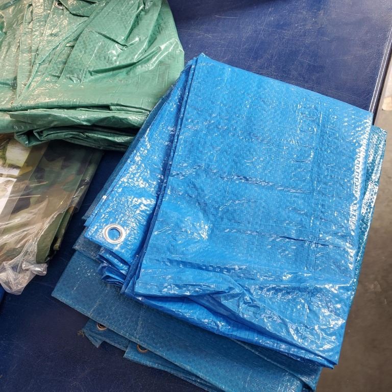 ASSORTED SMALL TARPS AND NEW CAMOFLAUGE TARP