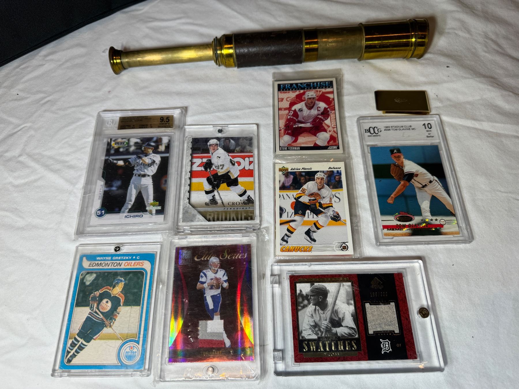 ASSORTED SPORTS CARDS AND VINTAGE TELESCOPE
