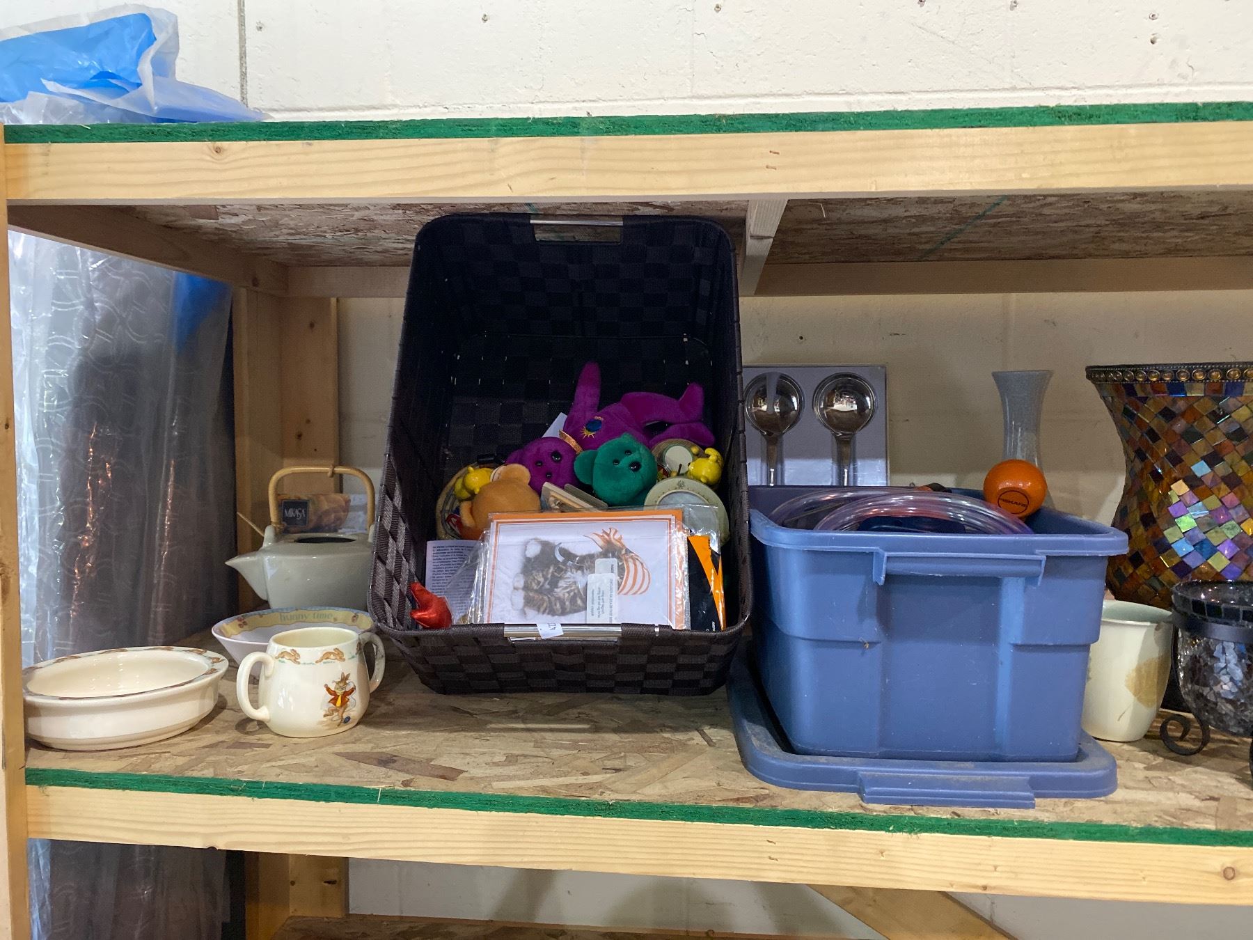 ASSORTED STORAGE LOCKER GOODS INCLUDING; DISHWARE, TY BEANIE BABIES, TOOLS AND MORE