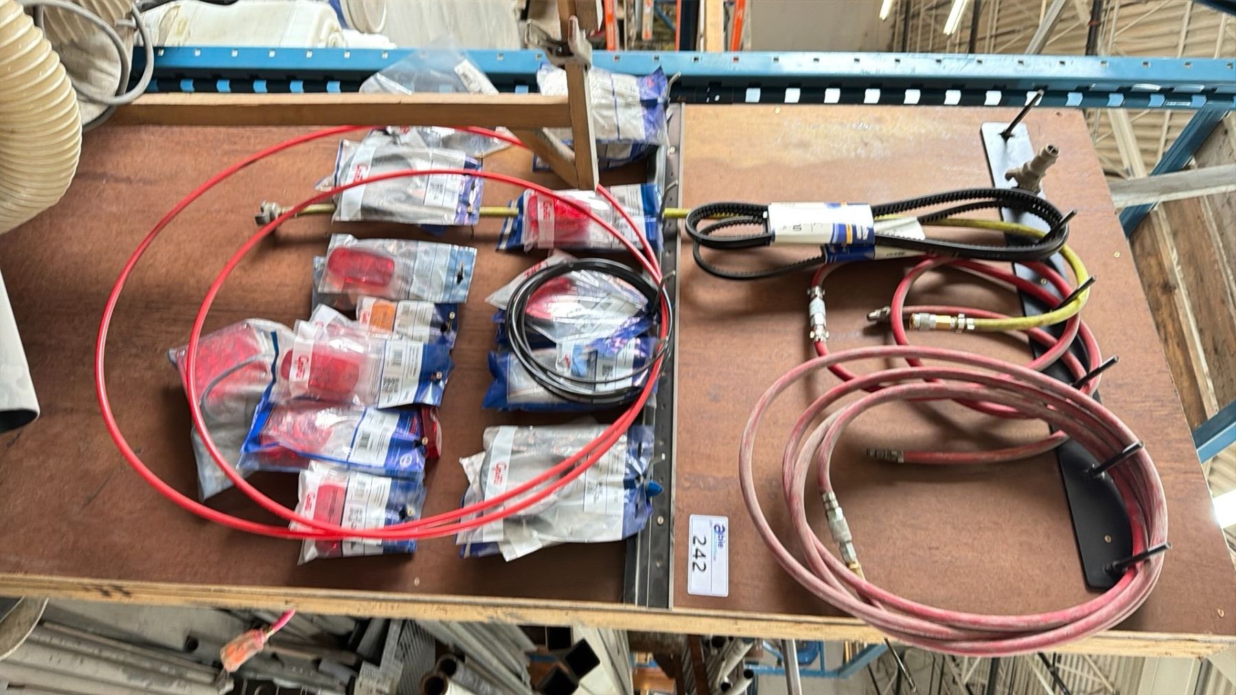 ASSORTED VEHICLE REPLACEMENT LENSES, 2 HOSE BELTS AND SEVERAL SMALL AIR LINE HOSES
