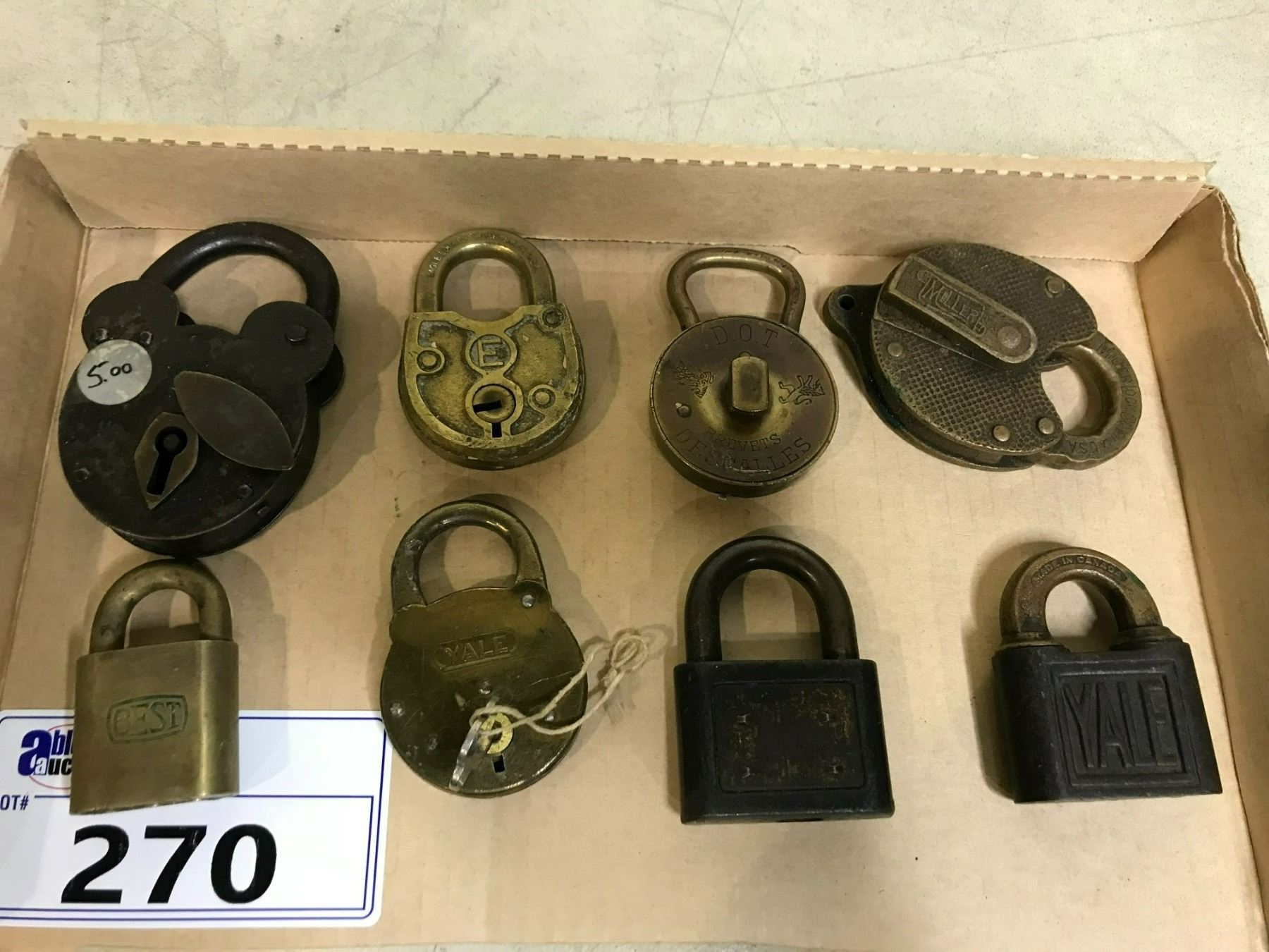 ASSORTED VINTAGE AND ANTIQUE LOCKS BRAND INCLUDE; YALE, MILLER, TITAN AND MORE