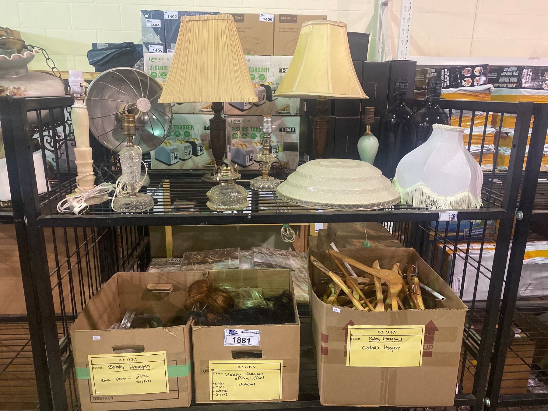 ASSORTED WIGS, LAMPS, COAT HANGERS, AND COLLECTABLES