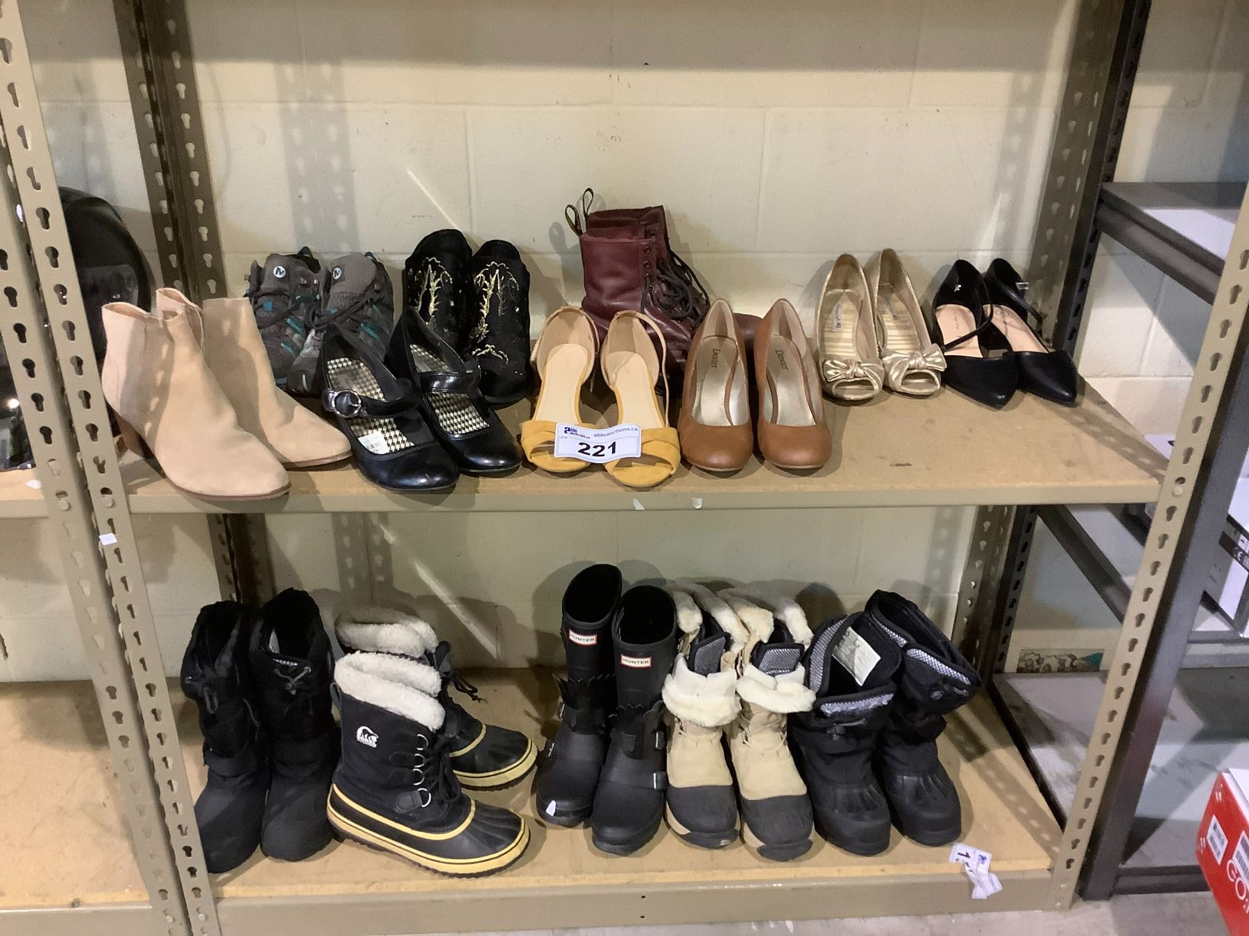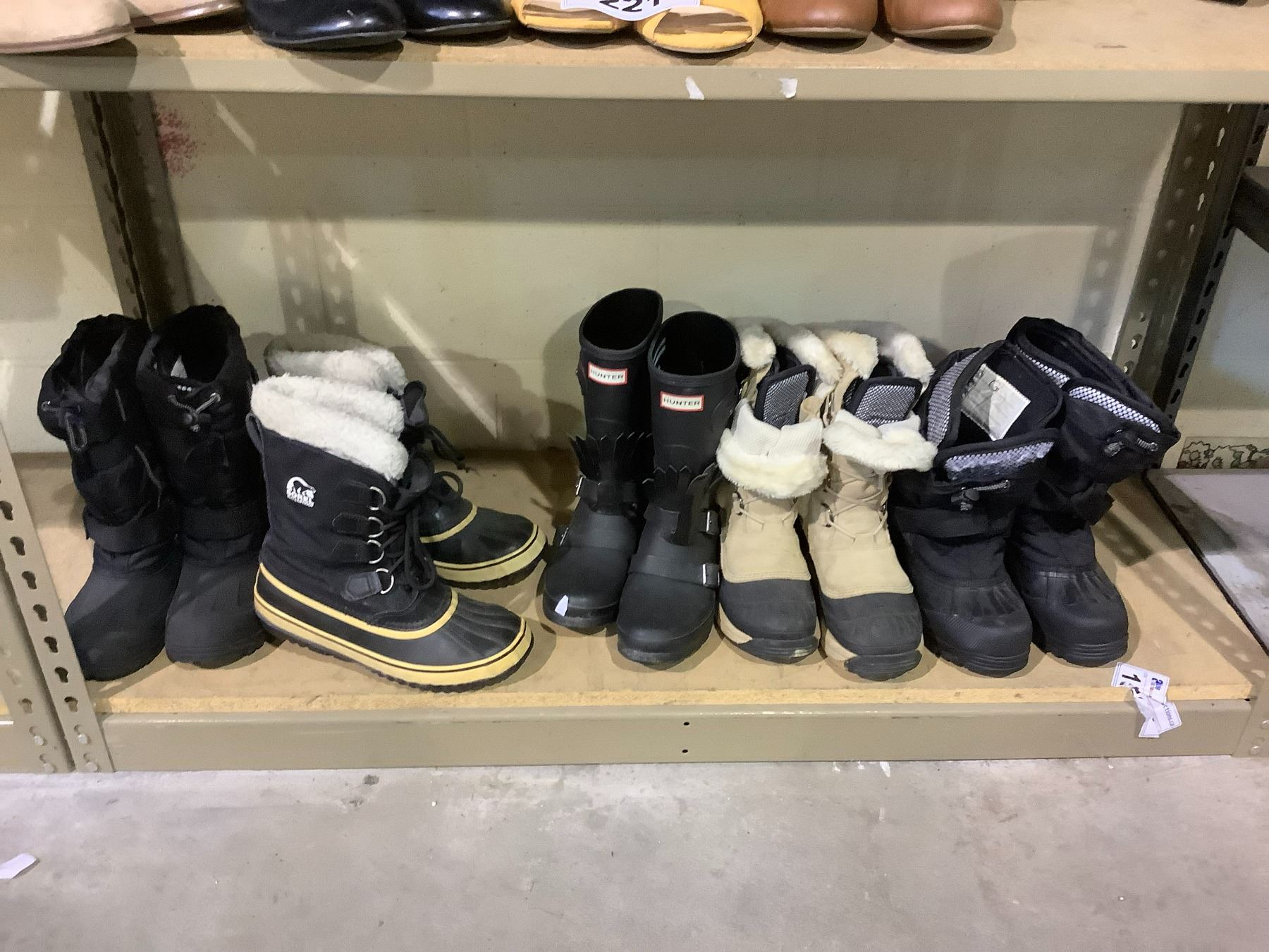 ASSORTED WOMEN'S SHOES AND BOOTS SIZE 8-9.5 BRANDS INCLUDING; HUNTER, SOREL, AMERICAN EAGLE, & MORE