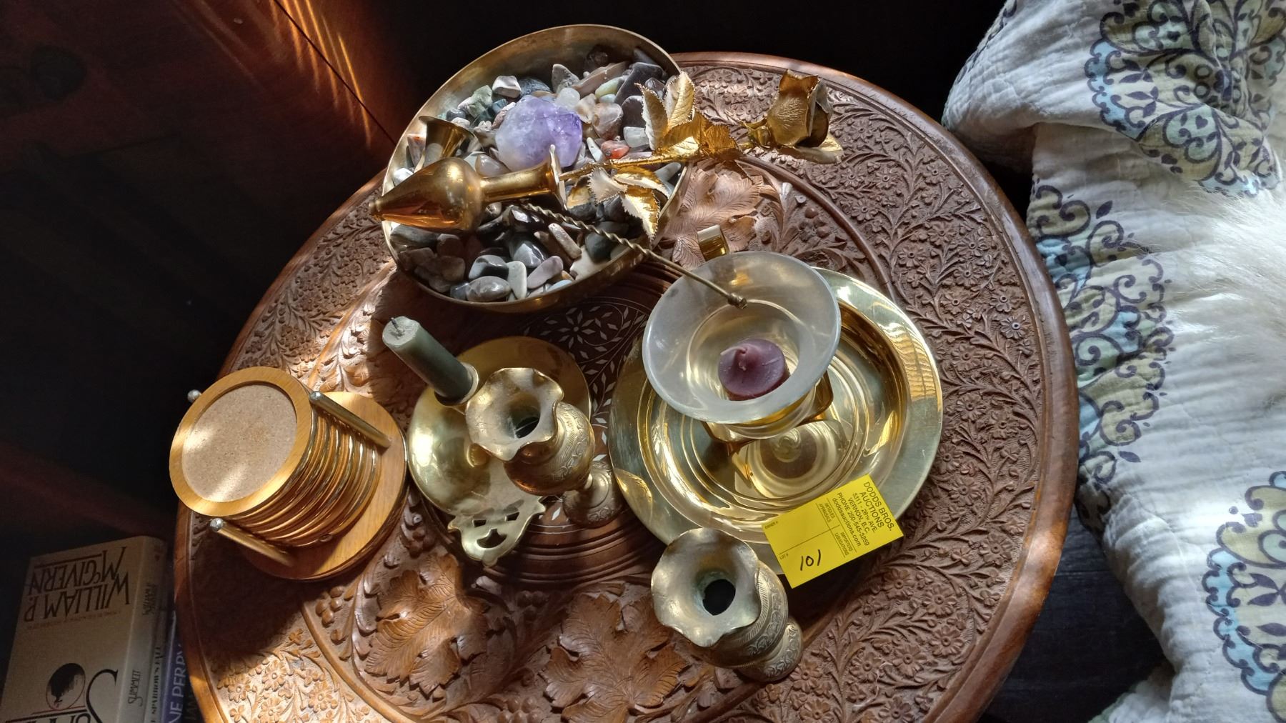 ASST. BRASSWARE, POLISHED ROCKS, ETC.
