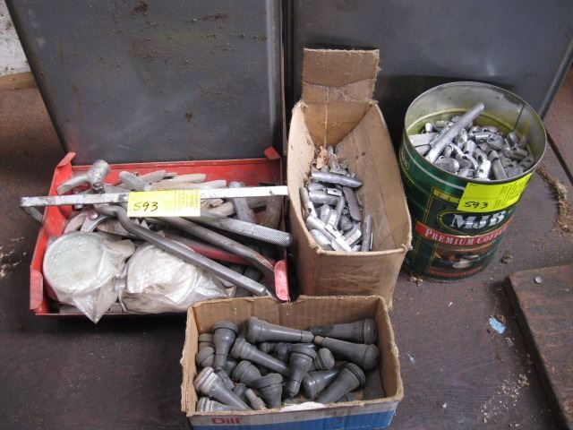 ASST. WHEEL WEIGHTS, WHEEL WEIGHT PLIERS, VALVES, ETC.