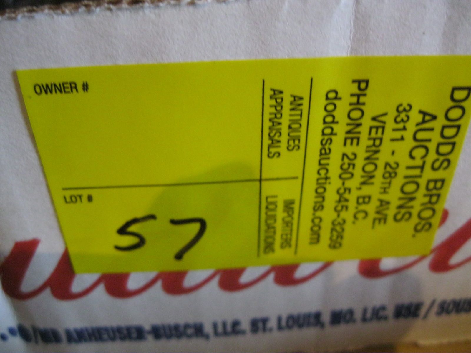 LIMITED SHIPPING AVAILABLE. 30KG LIMIT. YOU MUST CHECK WITH US FIRST ON ITEMS YOU ARE INTERESTED IN BIDDING ON TO SEE IF SUITABLE FOR SHIPPING. EMAIL doddsauctionvernon@gmail.com DEADLINE: SATURDAY, APRIL 20, 10AM. CLICK ON "VIEW PAYMENT & SHIPPING INFO" FOR FURTHER DETAILS. *NOTE - THERE WILL BE A FEE ADDED FOR BRINGING YOUR ITEM(S) BACK TO THE SHOWROOM FOR SHIPPING.