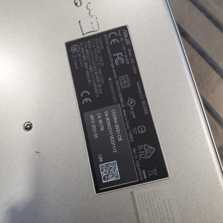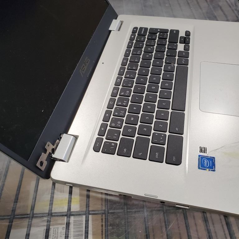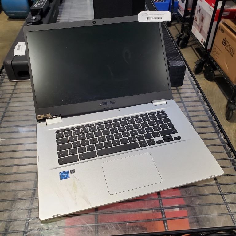 ASUS CHROMEBOOK C523NA 64GB WITH CHARGER WORKING ONE HINGE NEEDS REPAIR, RETAIL $369