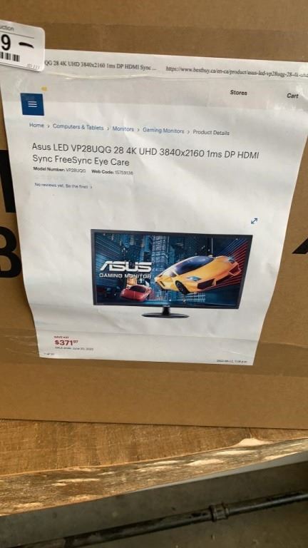 ASUS LED 28 INCH 4K UHD 1MS FREESYNC GAMING MONITOR - WORKING