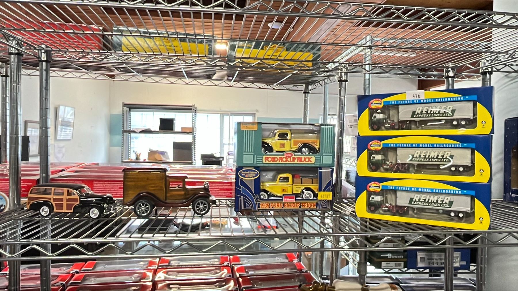 ATHEARNS IN MINIATURE REIMER EXPRESS LINE HO SCALE TRUCKS, 2 DIECAST FORD PICKUPS & A MODEL