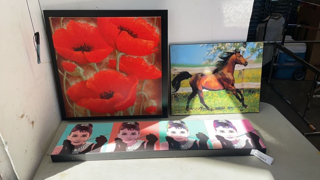 AUDREY HEPBURN COLLAGE WITH HORS PRINT AND STILL LIF FLOWERS