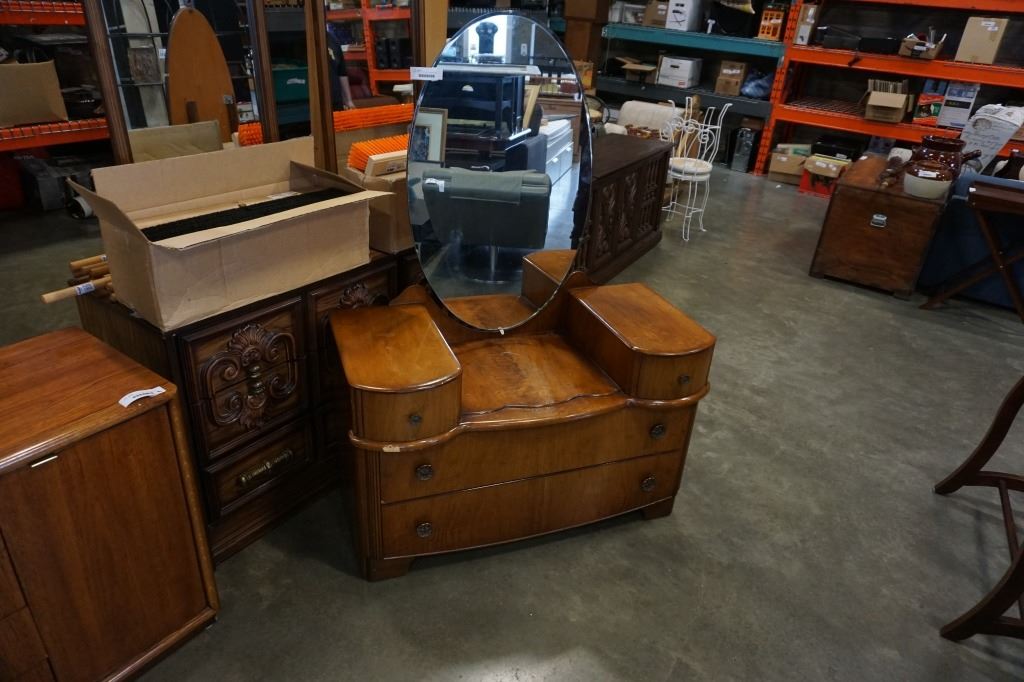 AUSTINSUITE VINTAGE 4 DRAWER VANITY WITH OVAL MIRROR
