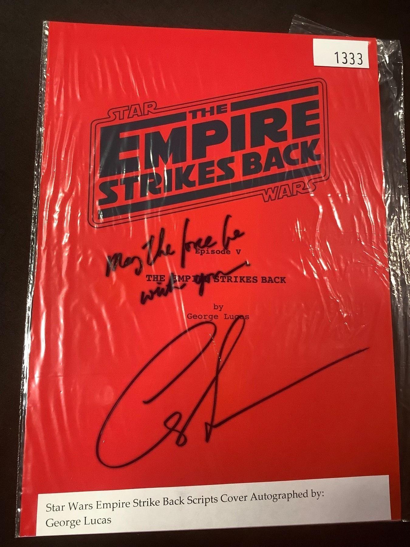 AUTOGRAPHED STAR WARS EMPIRE STRIKES BACK SCRIPT COVER WITH COA (SIGNED BY GEORGE LUCAS)