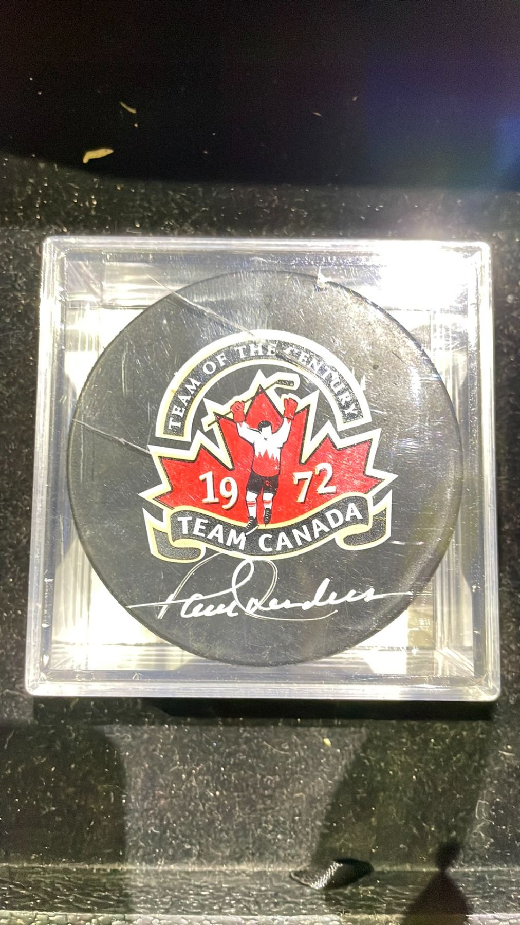 AUTOGRAPHED TEAM CANADA 1972 PAUL HENDERSON PUCK WITH COA