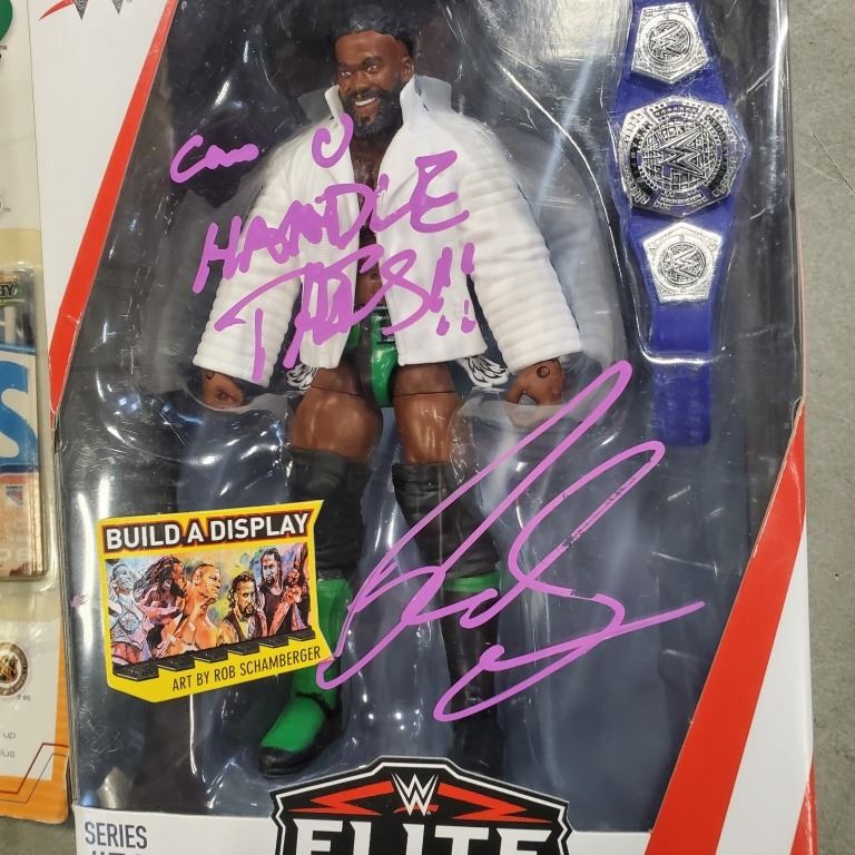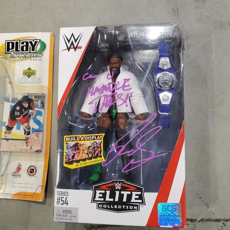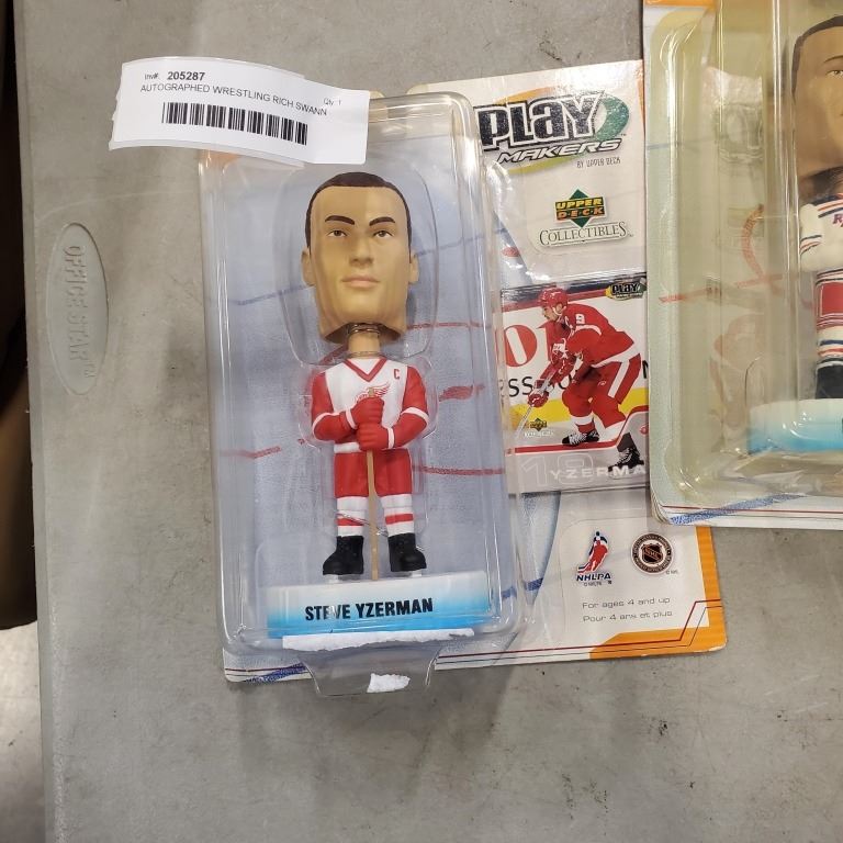 AUTOGRAPHED WRESTLING RICH SWANN FIGURE AND 2 NHL BOBBLE HEADS