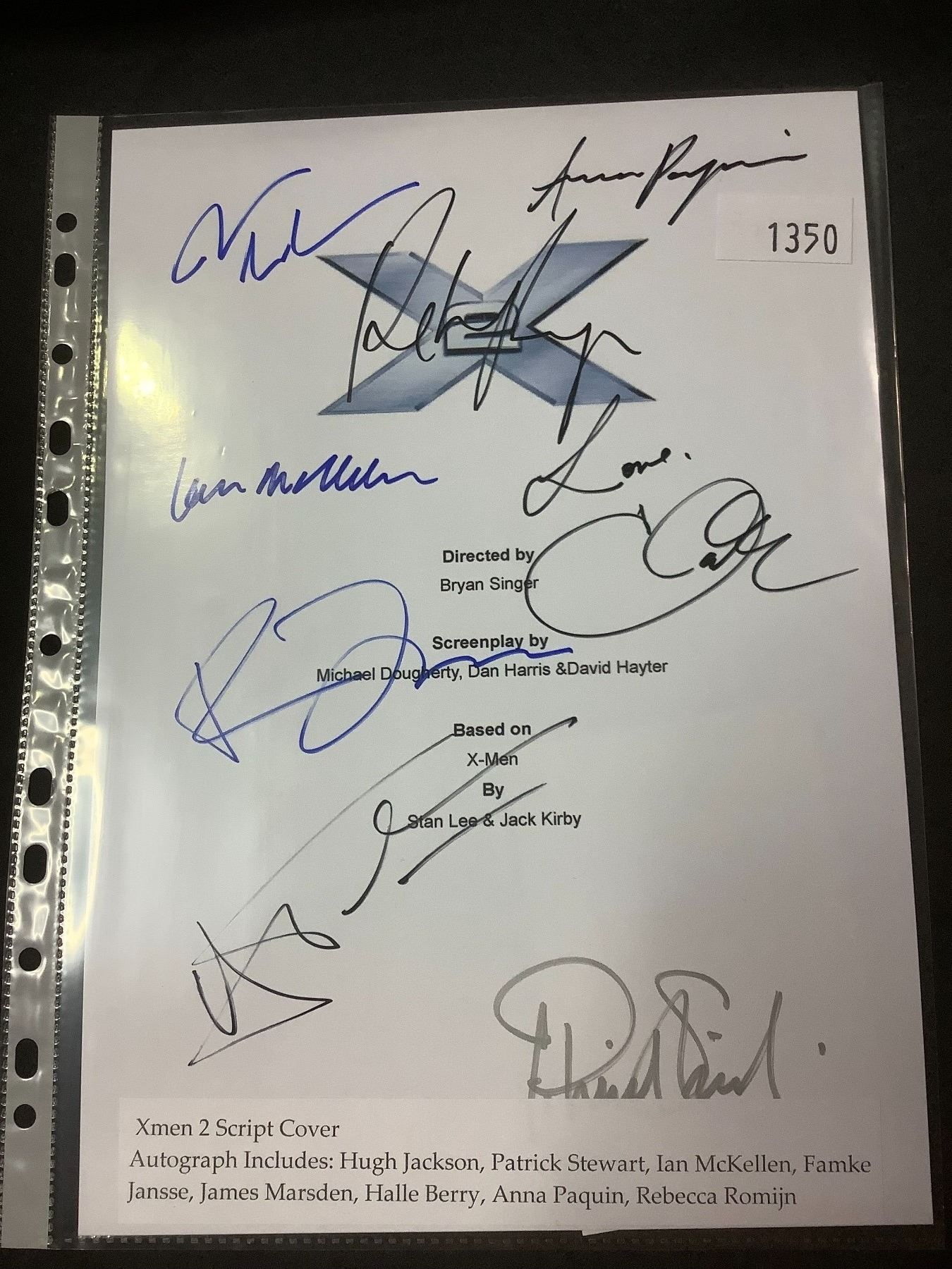AUTOGRAPHED XMEN 2 SCRIPT COVER WITH COA (SIGNED BY HUGH JACKSON, PATRICK STEWART, IAN MCKELLEN,
