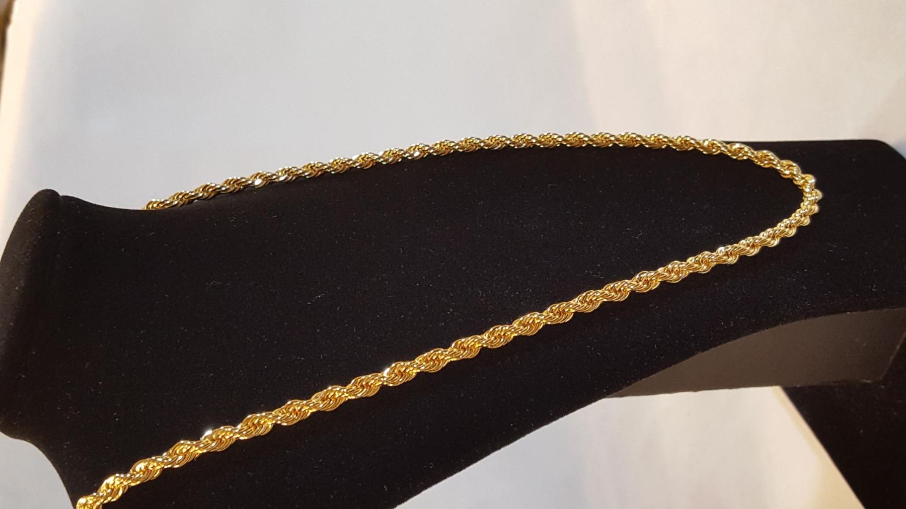 AWESOME 14 Kt. GOLD PLATED ROPE CHAIN.THIS CHAIN IS 24" LONG AND 3 mm. THICK. APPROX 23 GRAMS. SHOWS LIKE SOLID GOLD WITHOUT THE SOLID GOLD PRICE. GET READY FOR THE COMPLIMENTS ON THIS ONE.