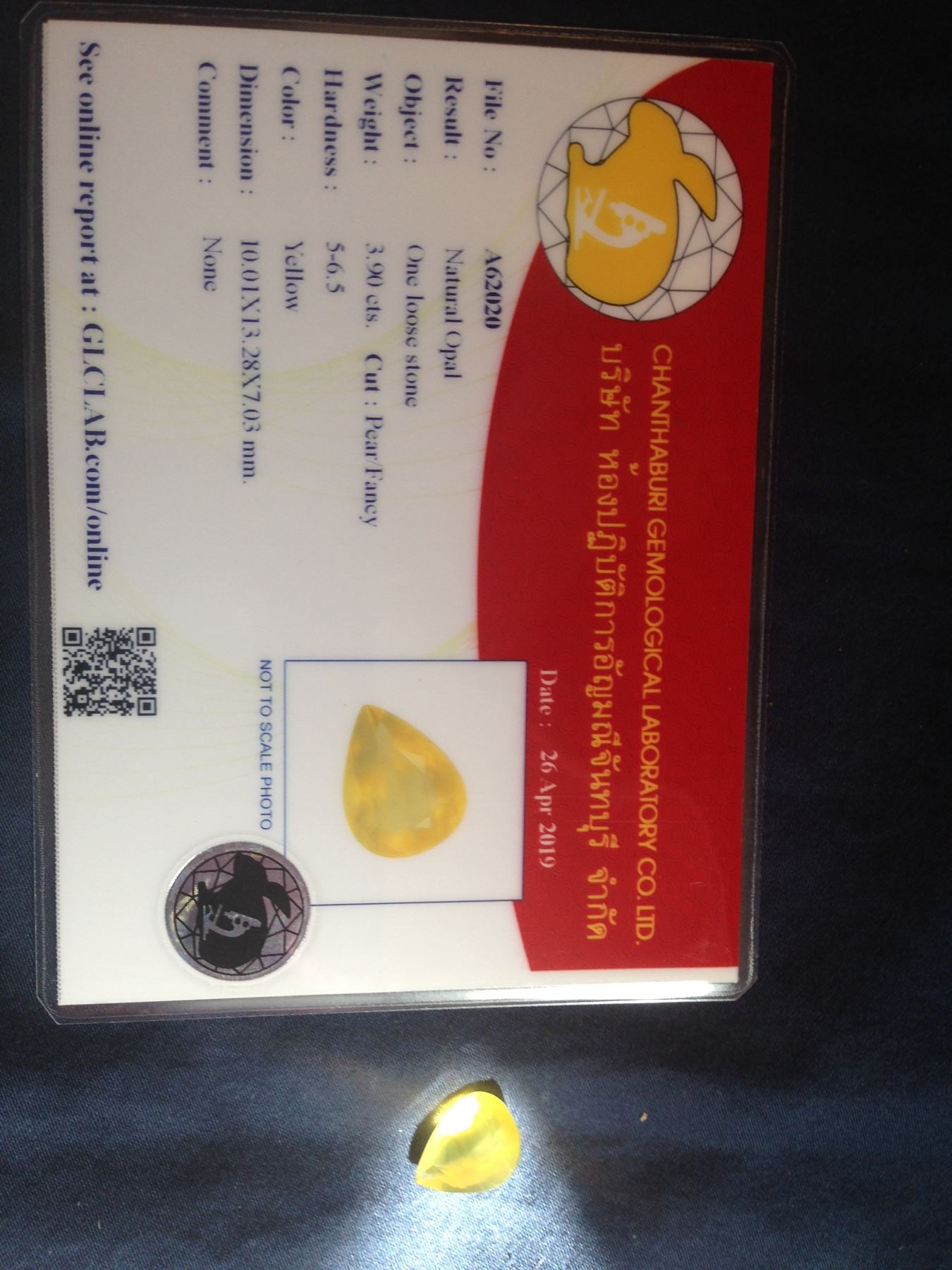 AWESOME CERTIFIED 100 % NATURAL 3.90 CT UNHEATED YELLOW MEXICAN OPAL .EYE CLEAN PEAR CUT. MEASURING 10.01 x 13.28 x 7.03 mm.INVESTMENT GRADE QUALITY IN THIS ONE.