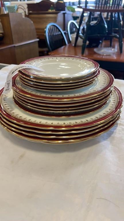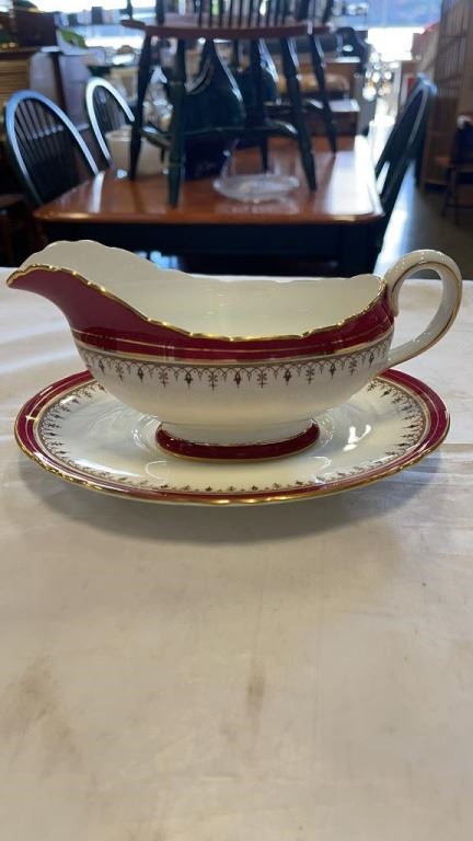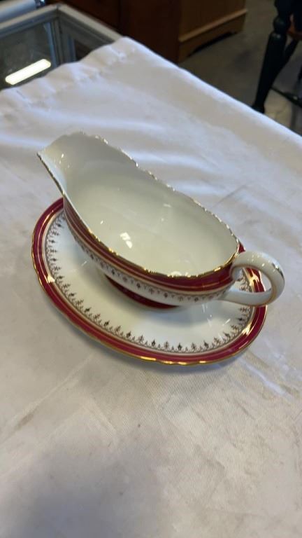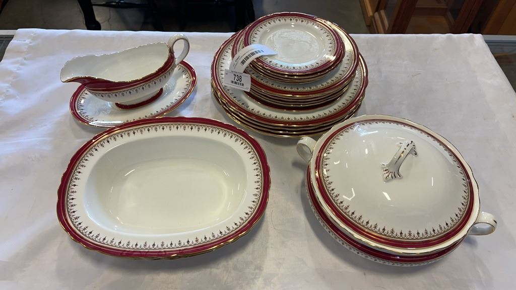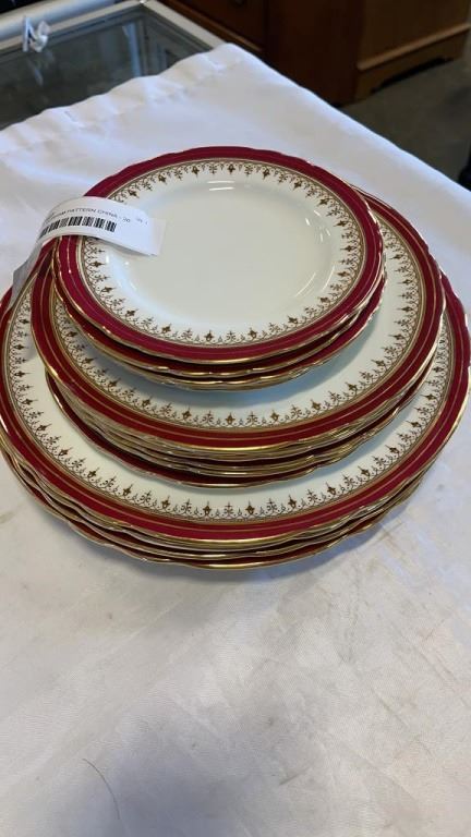 AYNSLEY DURHAM PATTERN CHINA - 20 PIECES INCLUDES GRAVY BOAT, LIDDED TUREEN, 2 SERVING BOWLS AND PLATES