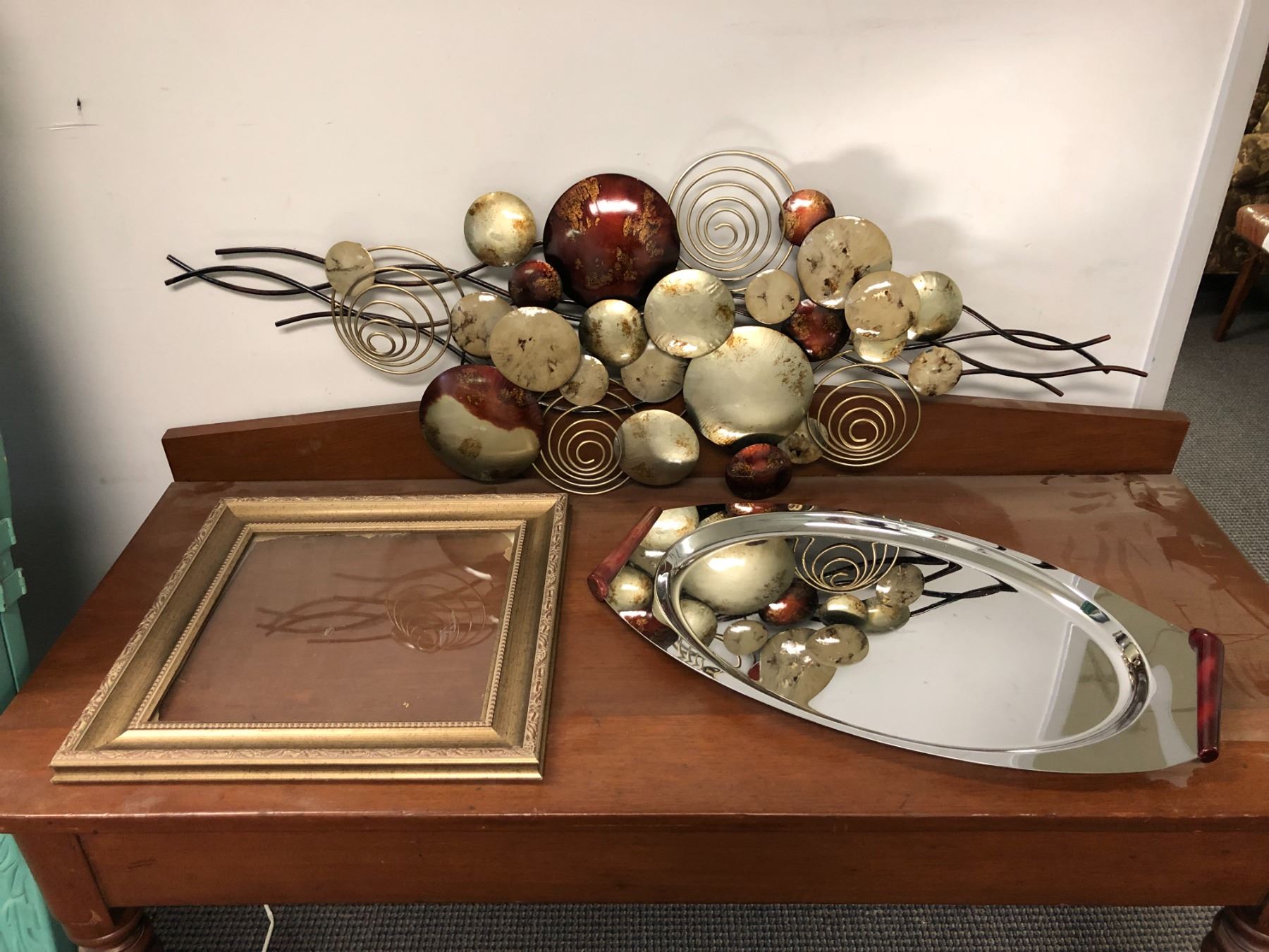 Abstract metal wall art hanging/ large serving platter & small picture frame