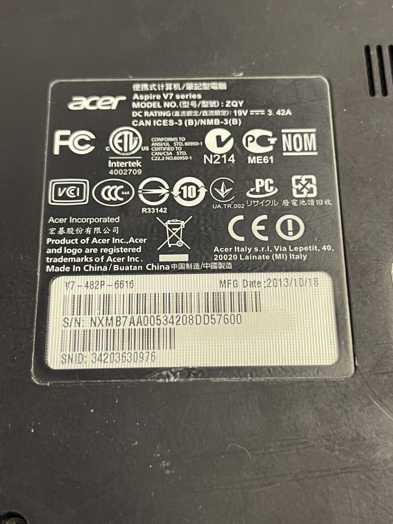 Acer Aspire V7 Series ZQY Laptop