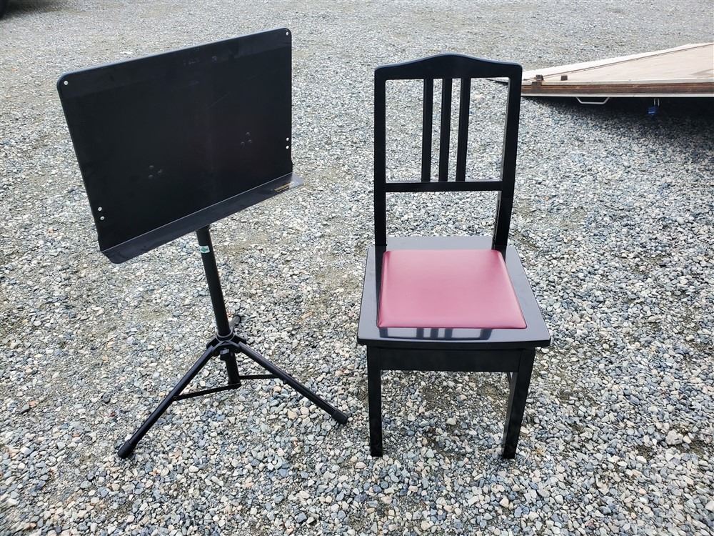 Adjustable Piano Chair & Music Stand Most Items have not been tested - 17% Buyer Fee. Payment Processed through Live Auction World ( Visa or Master Card ) pick up Saturday, or Tuesday