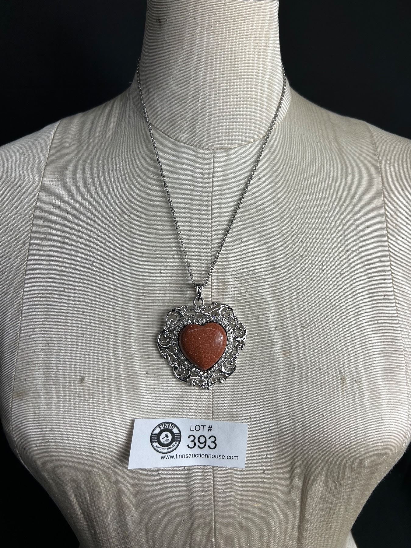 Adorable Vintage Gold Stone Silver Heart Necklace