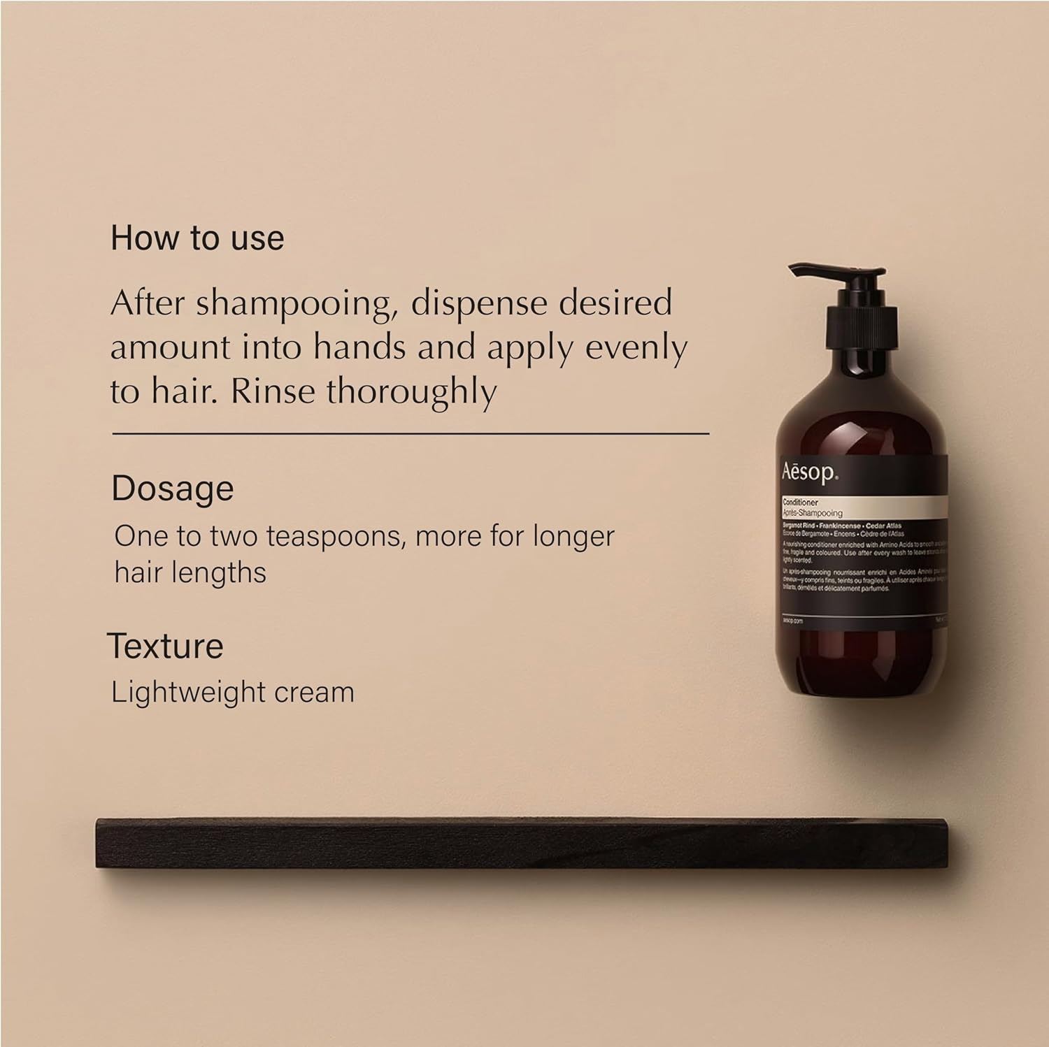 - Aesop Conditioner: A nourishing conditioner enriched with amino acids to soften and hydrate most hair types, including fine, fragile and colored. Leaves hair fragrant and refreshed.
