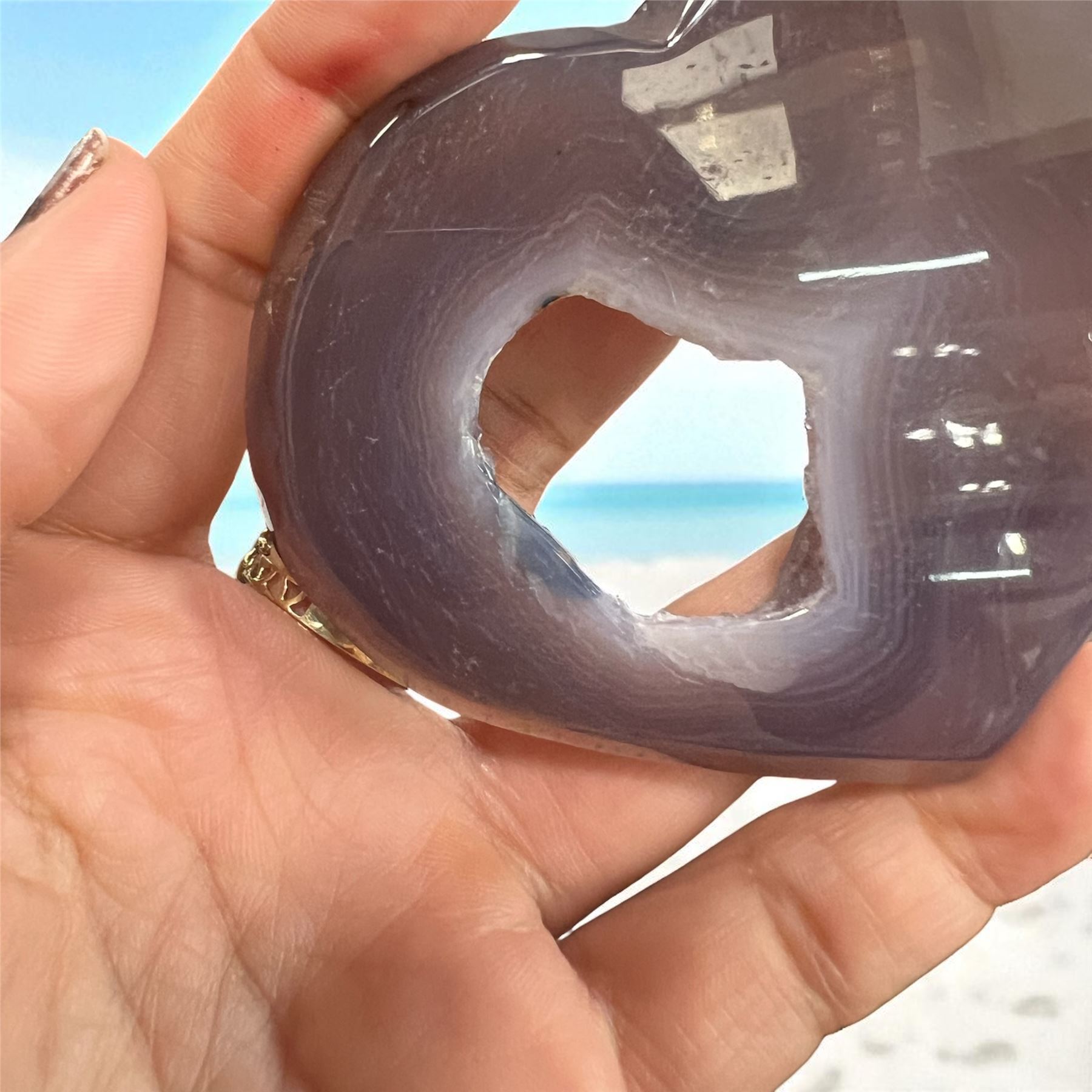Agate Heart Shaped Stone with natural hole 3.2 inch