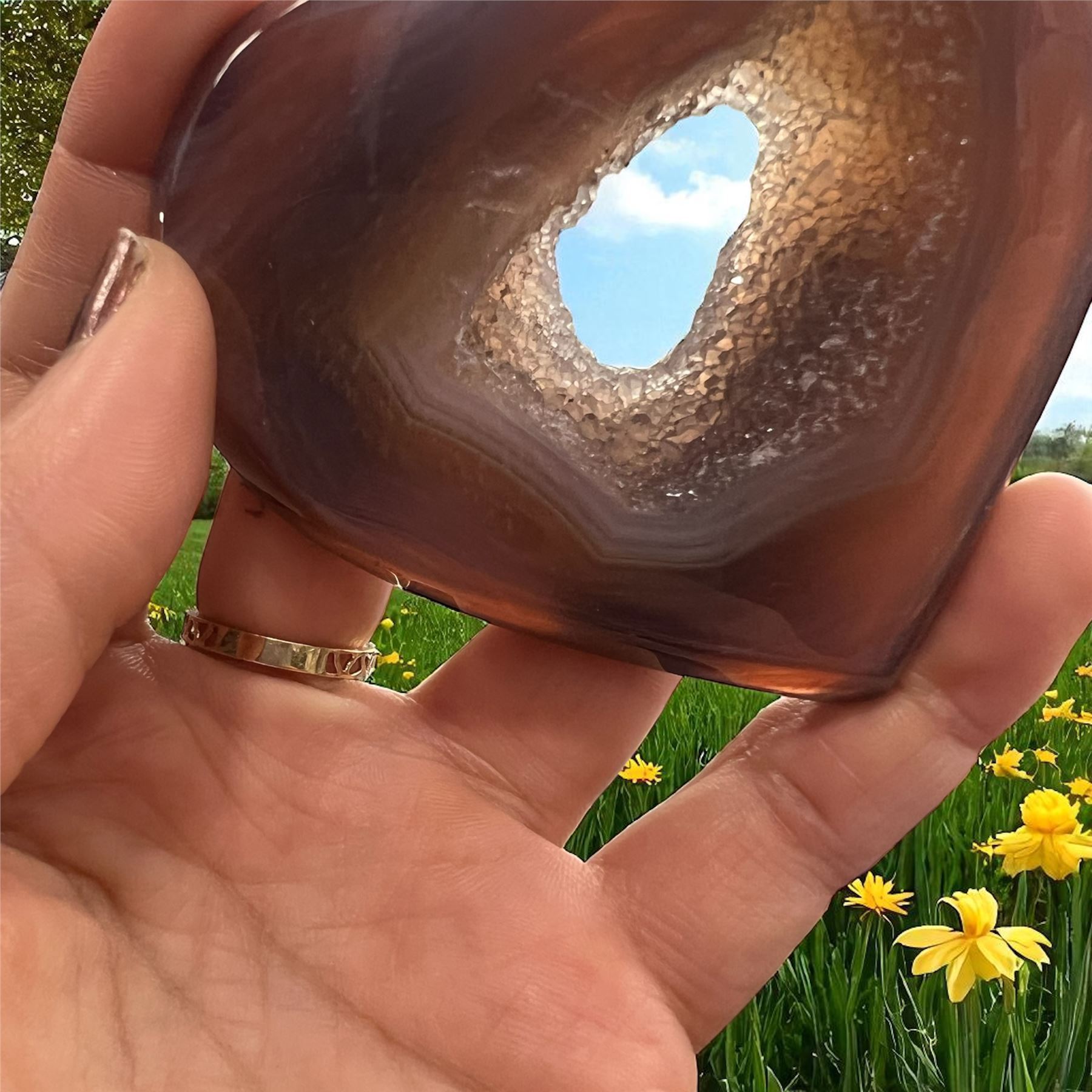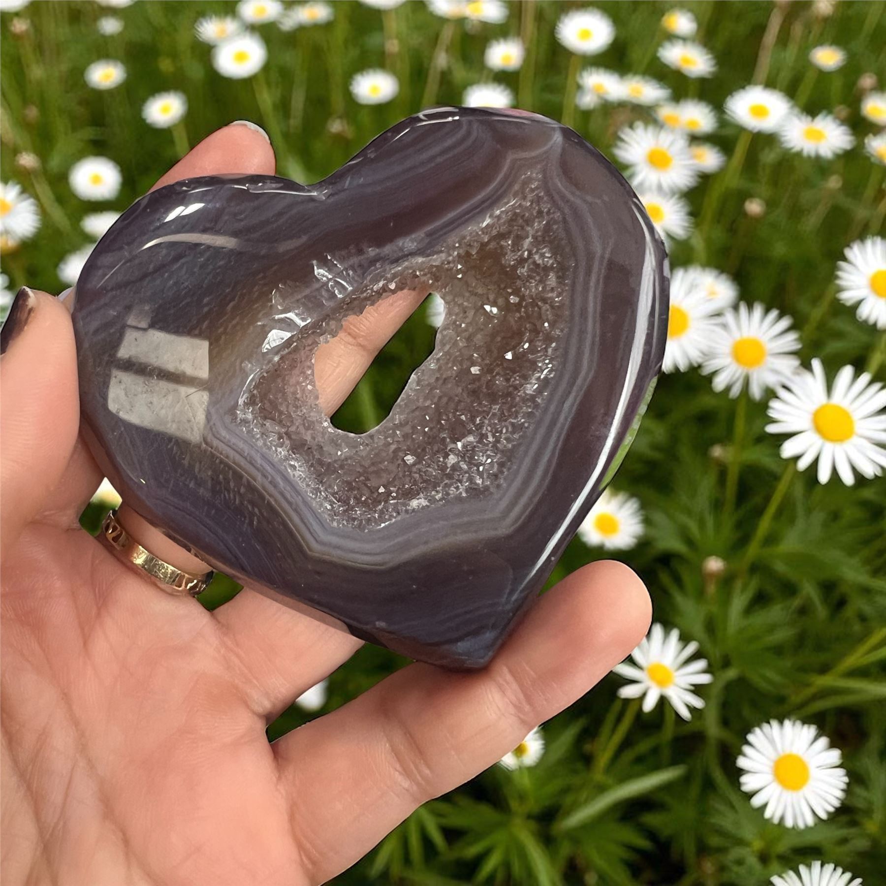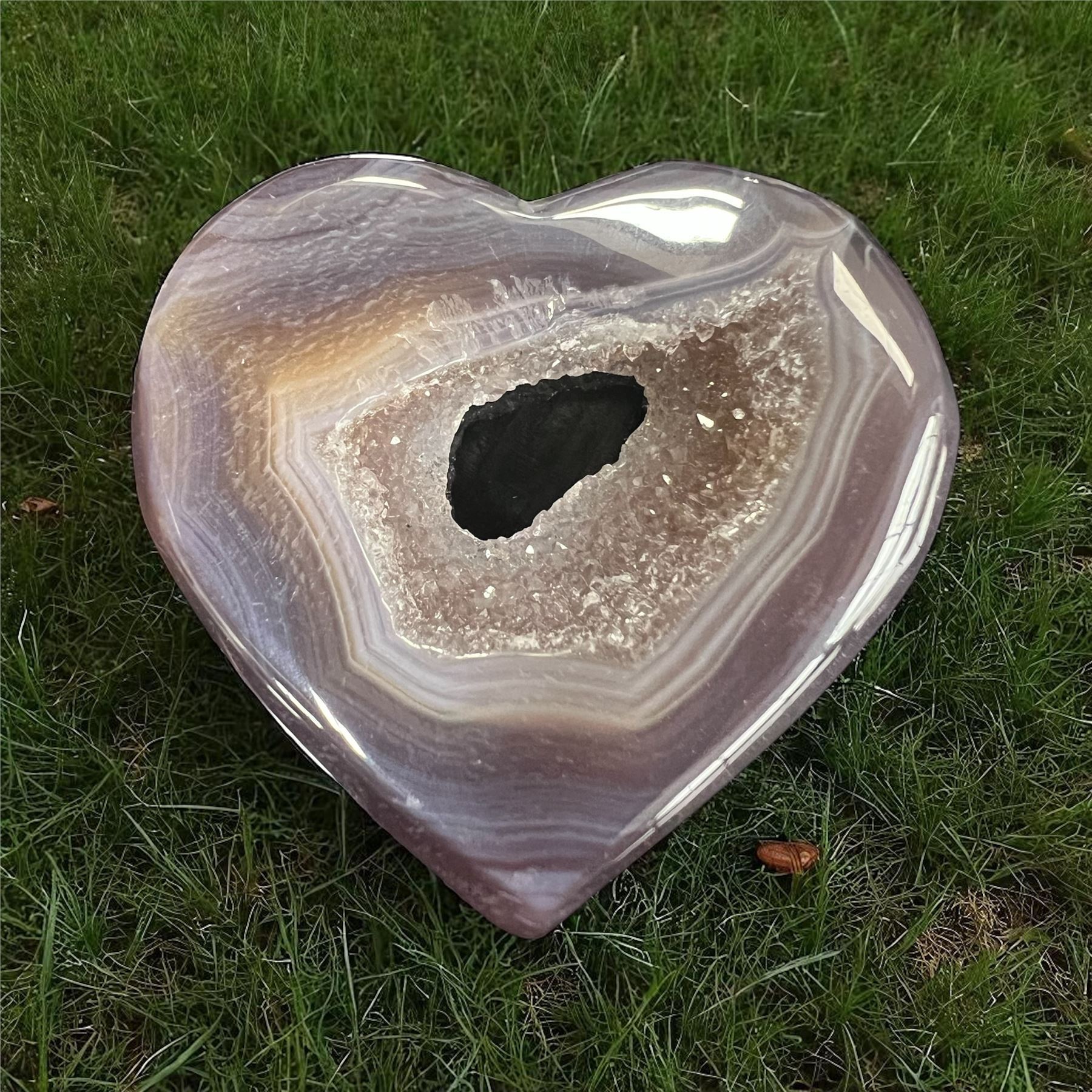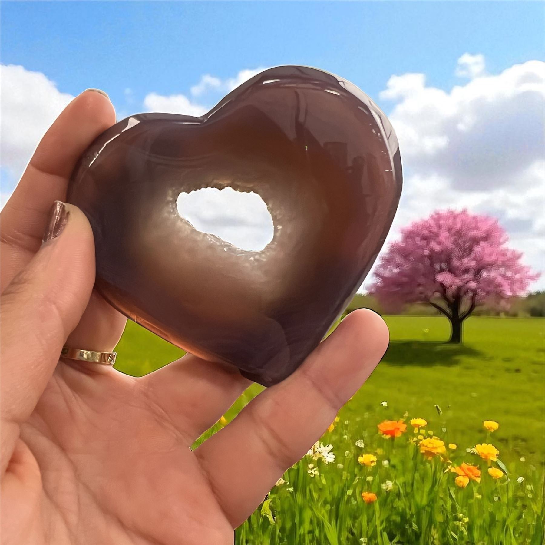 Agate Heart Shaped Stone with natural hole 3.5 Inch