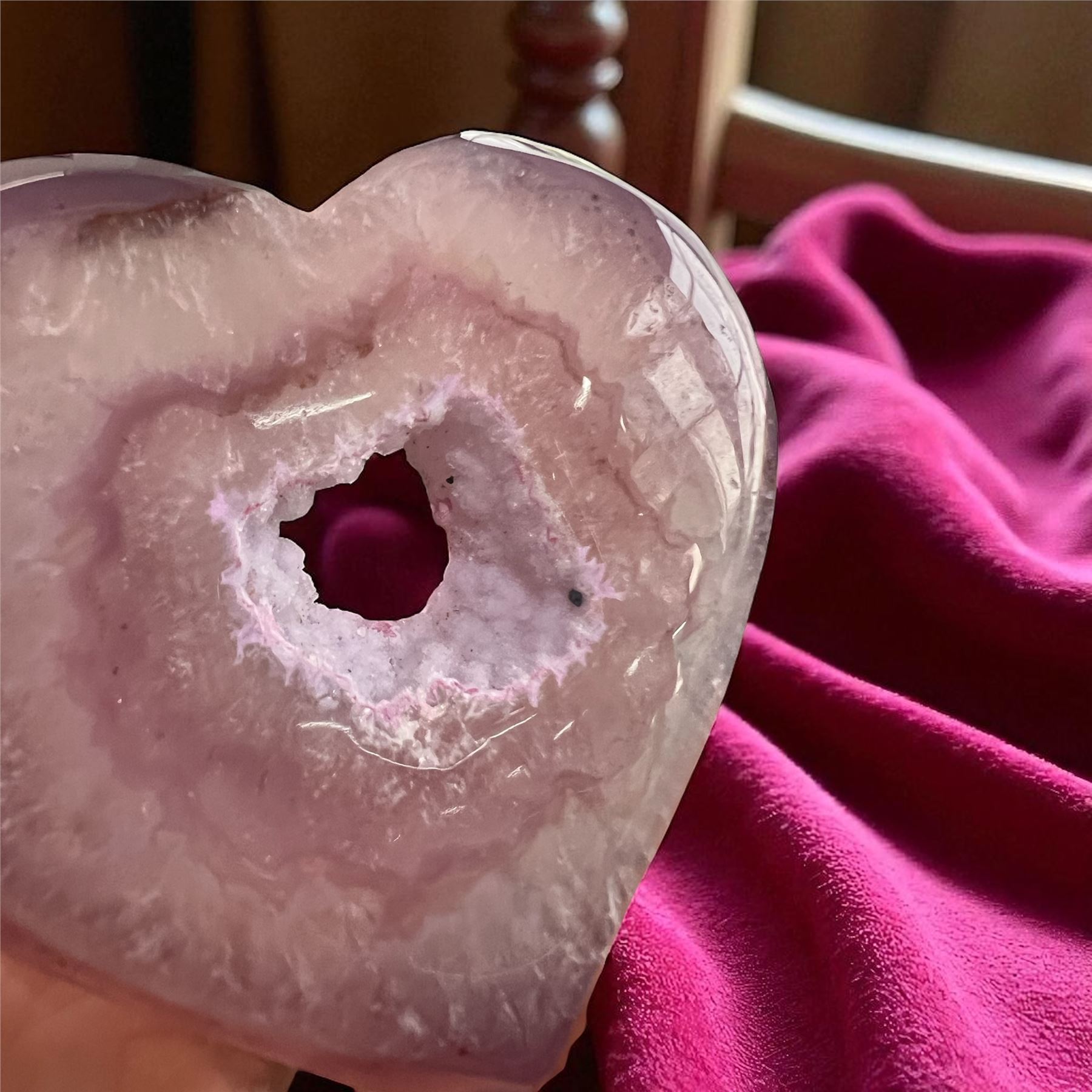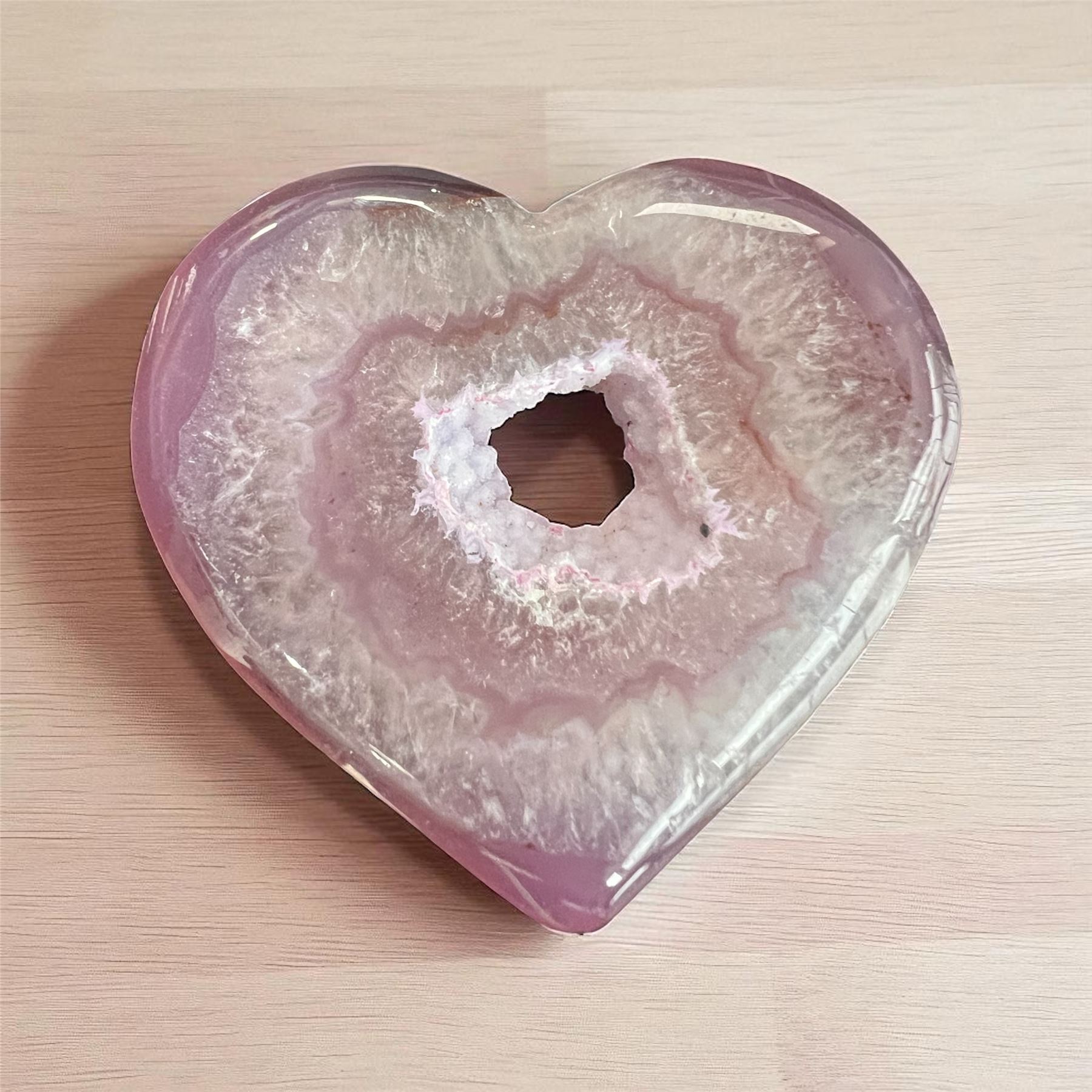Agate Heart Shaped Stone with natural hole 3.5 inch