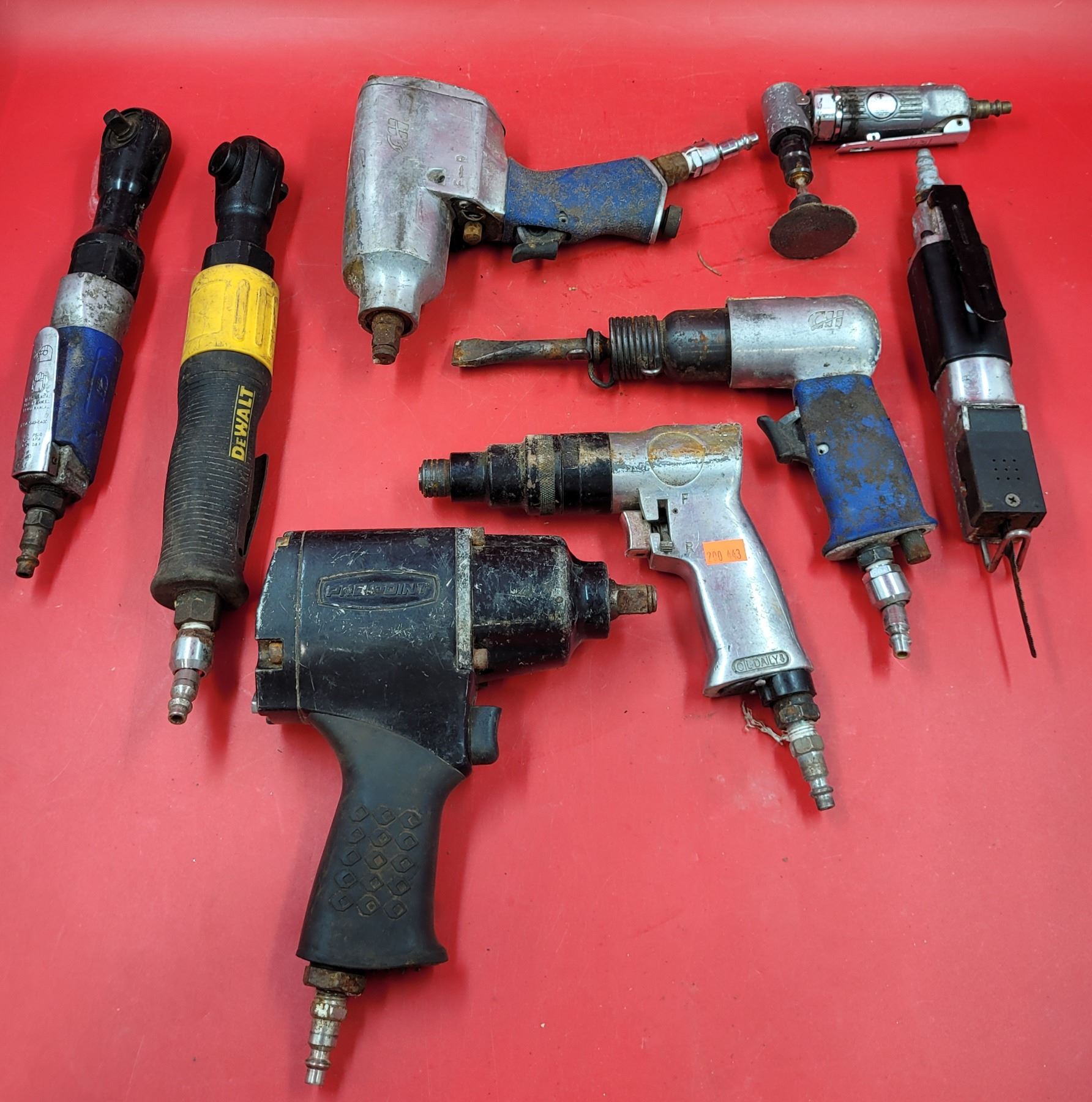 Air/Pneumatic Tool Lot w/ Impact Wrench, Air Ratchet, & More