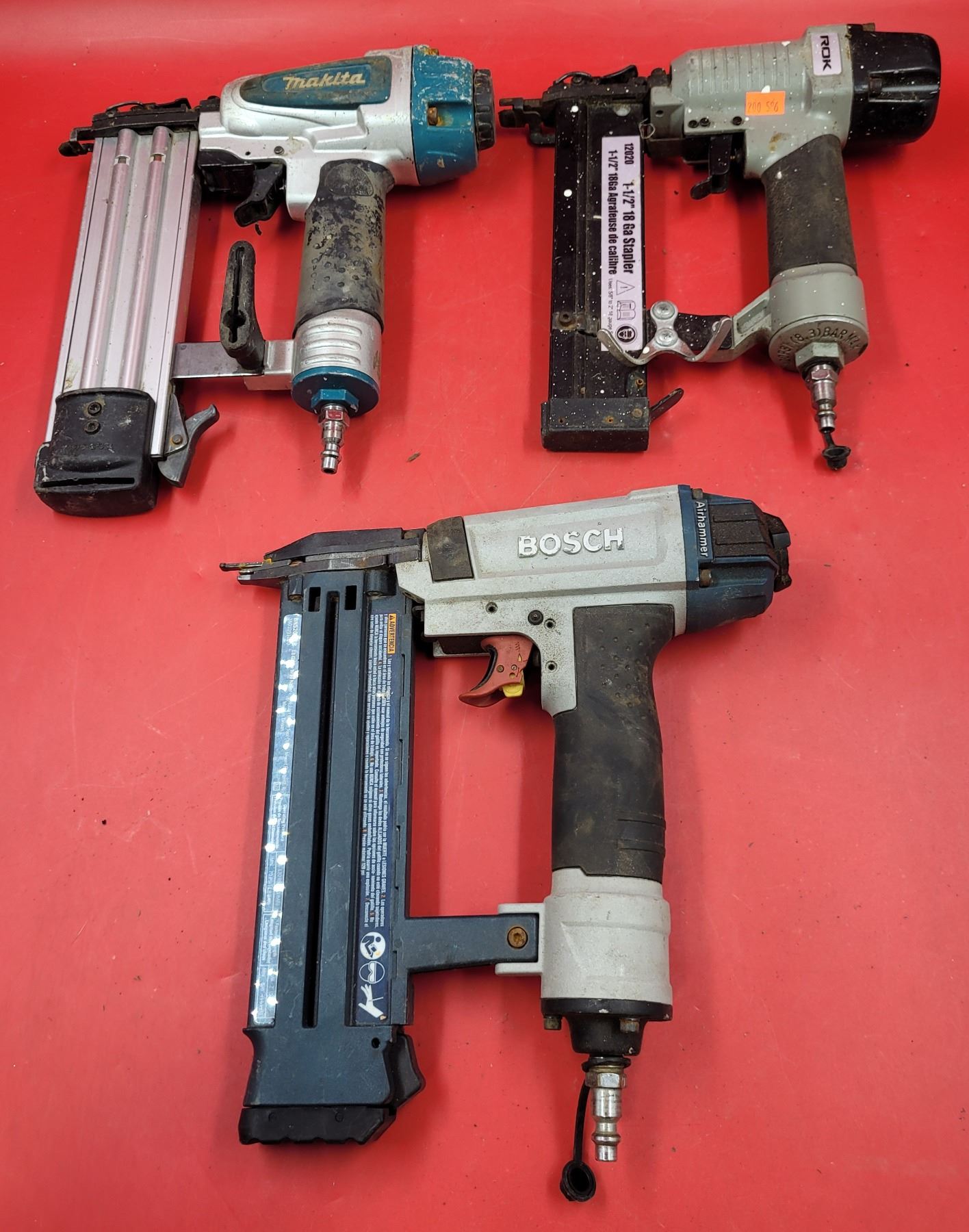 Air Stapler Lot w/ Bosch, Makita, & Rok