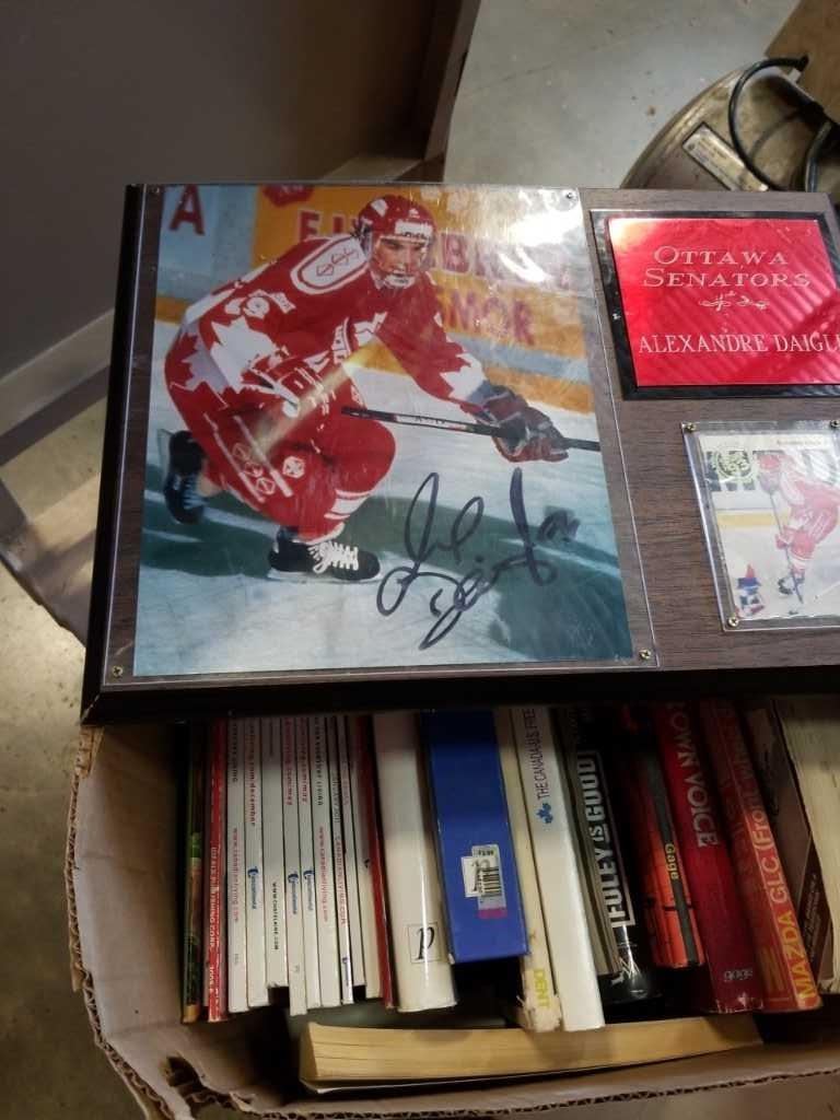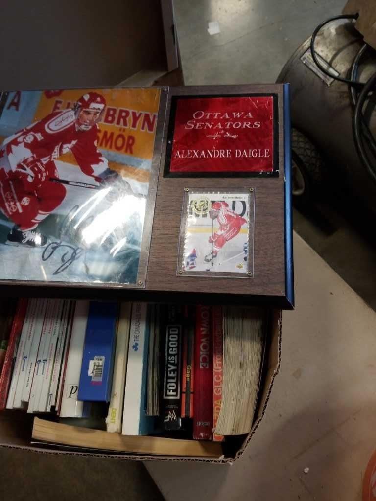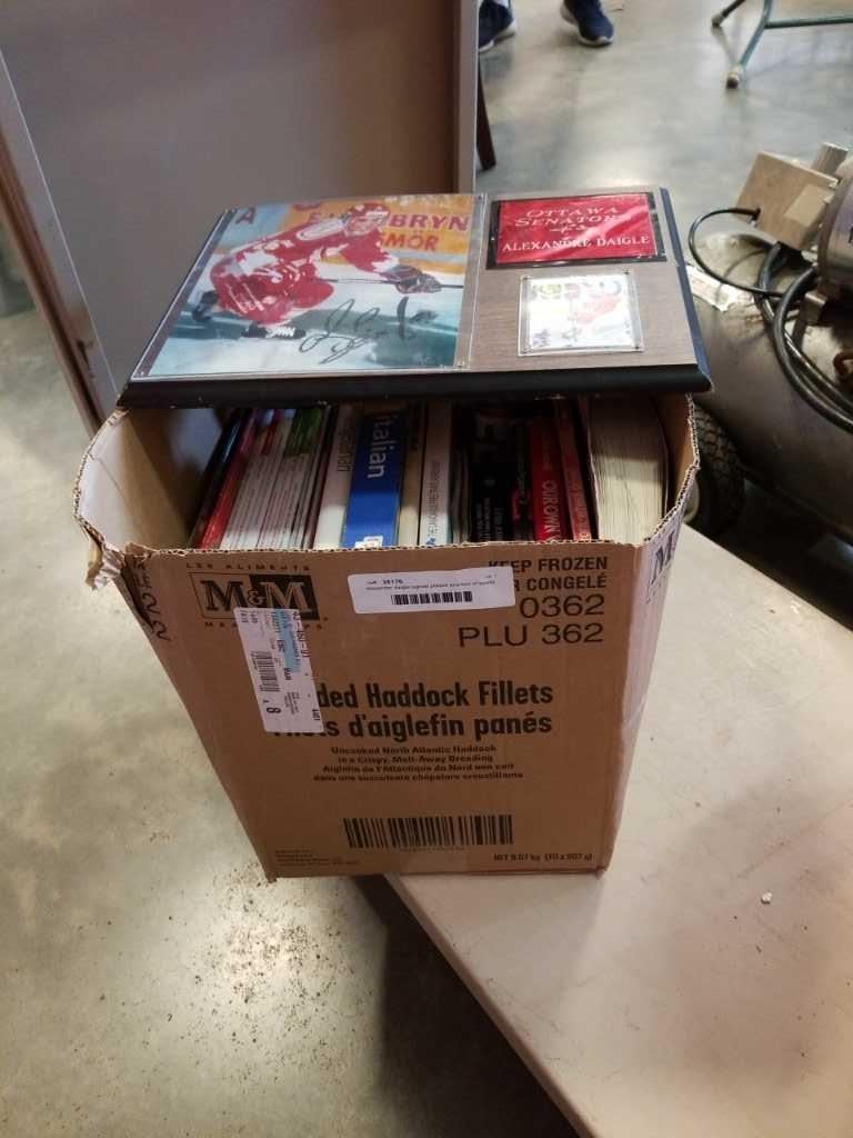 Alexander daigle signed plaque and box of books