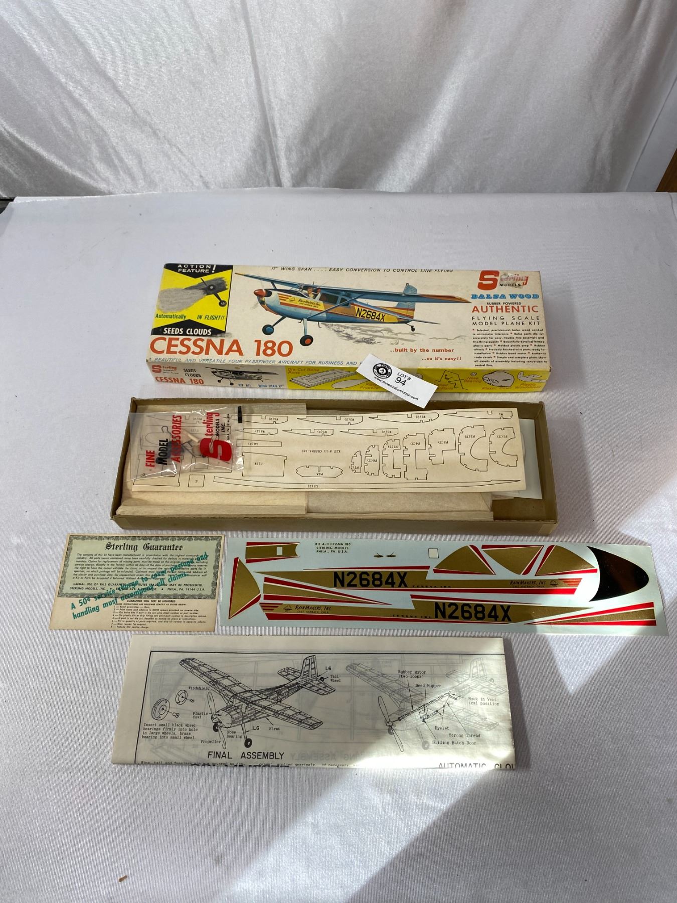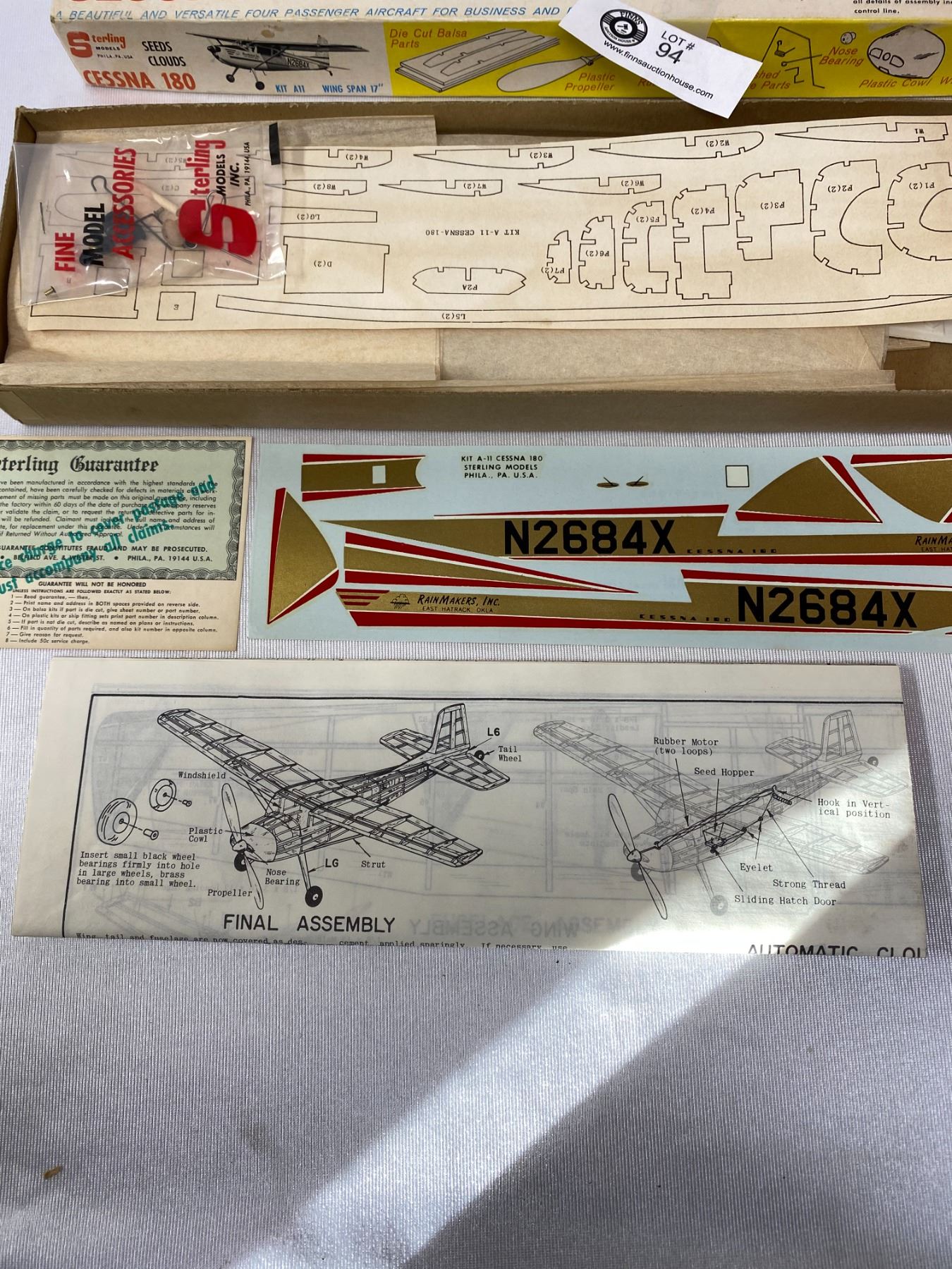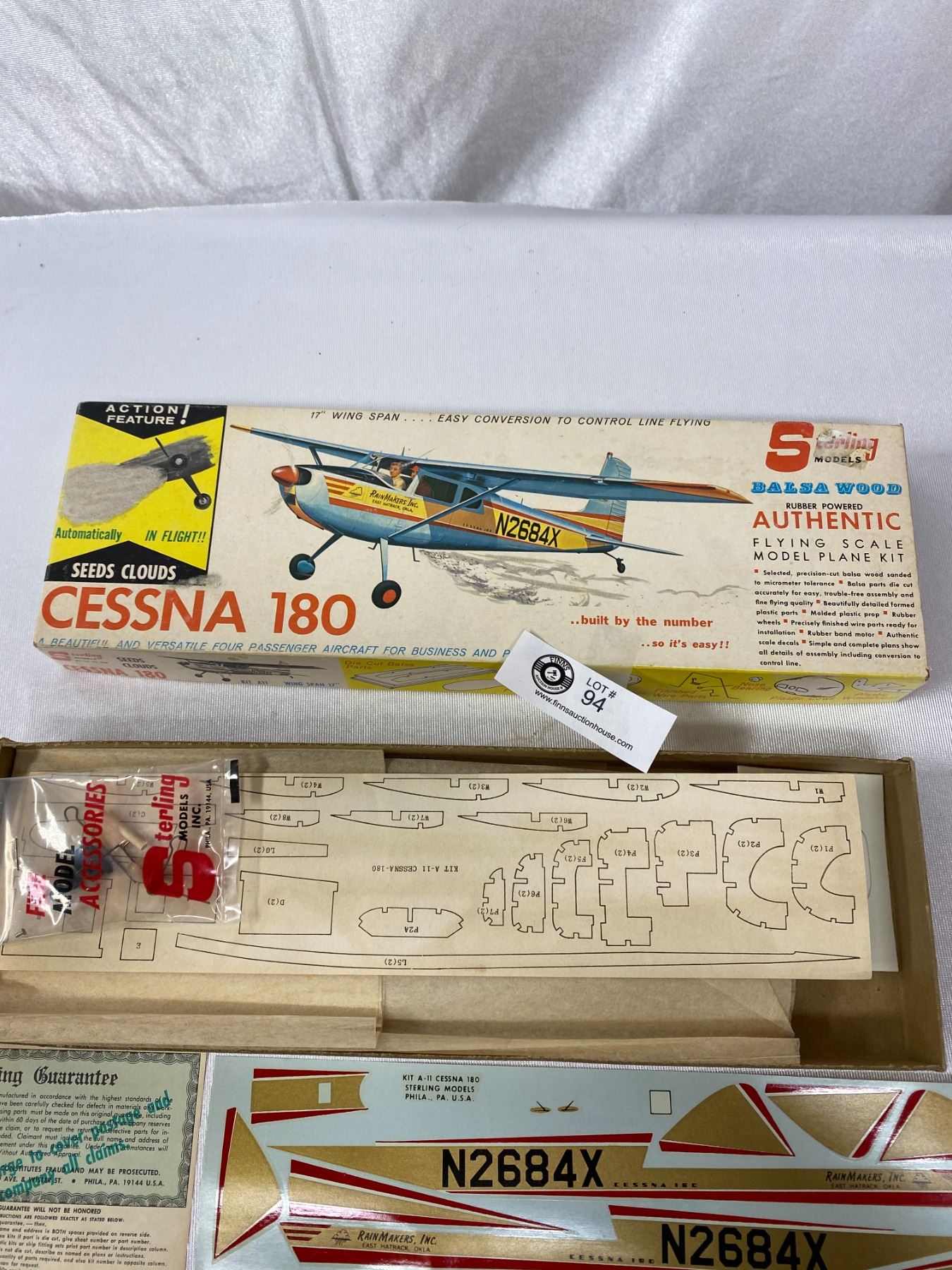 All Sterling Cessna 180 Seeds Clouds In Flight, 17" Wingspan Free Flight/Control Line Wood Model Plane Kit, New In Box