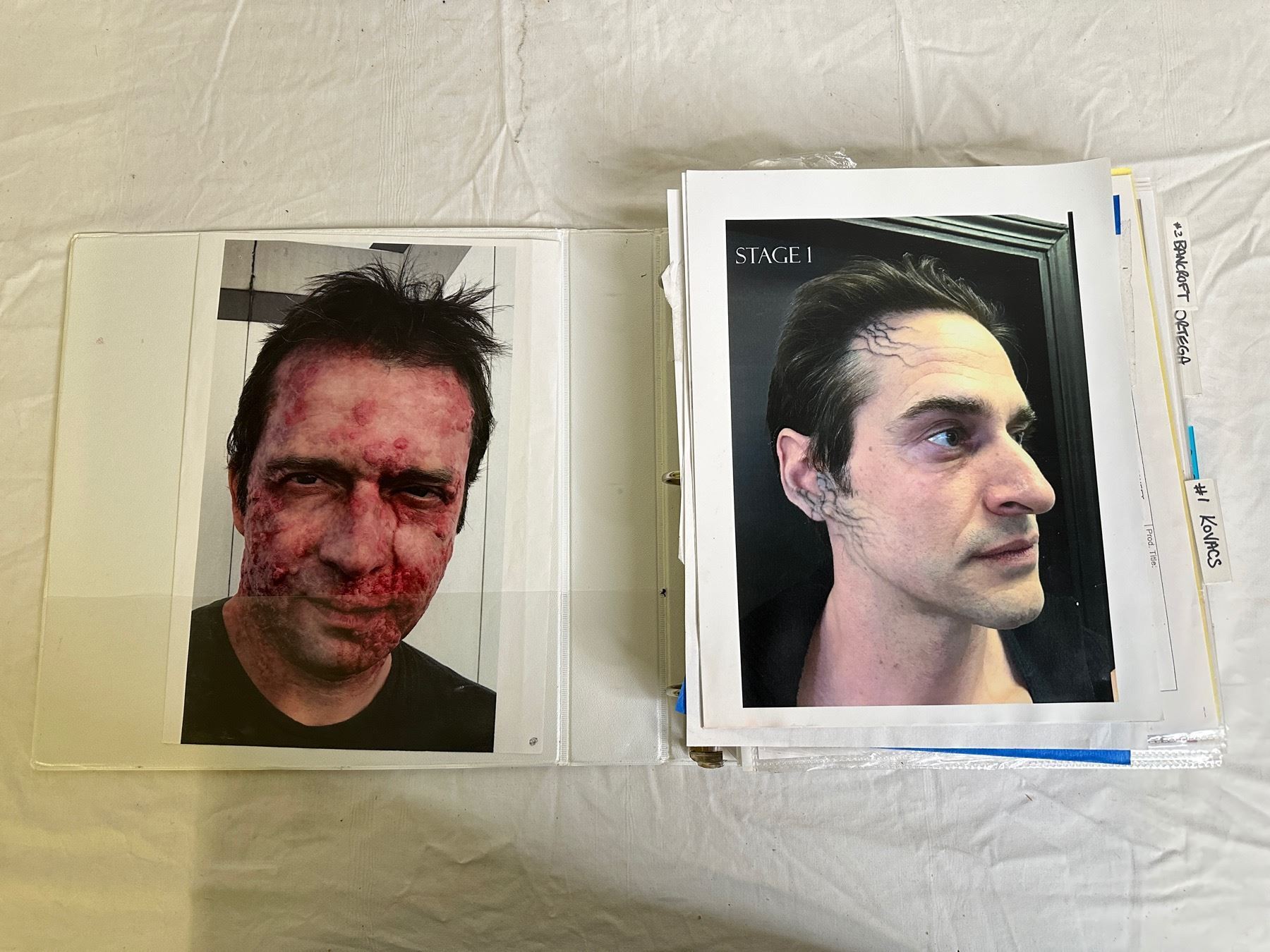 "Altered Carbon" Episode 101 on set continuity photographs of cast/ production photos/ scars/ swatches/ script
