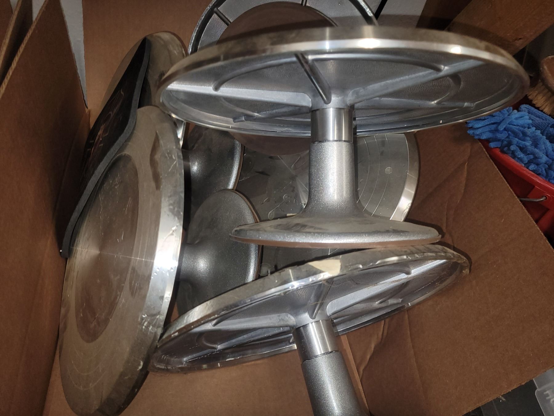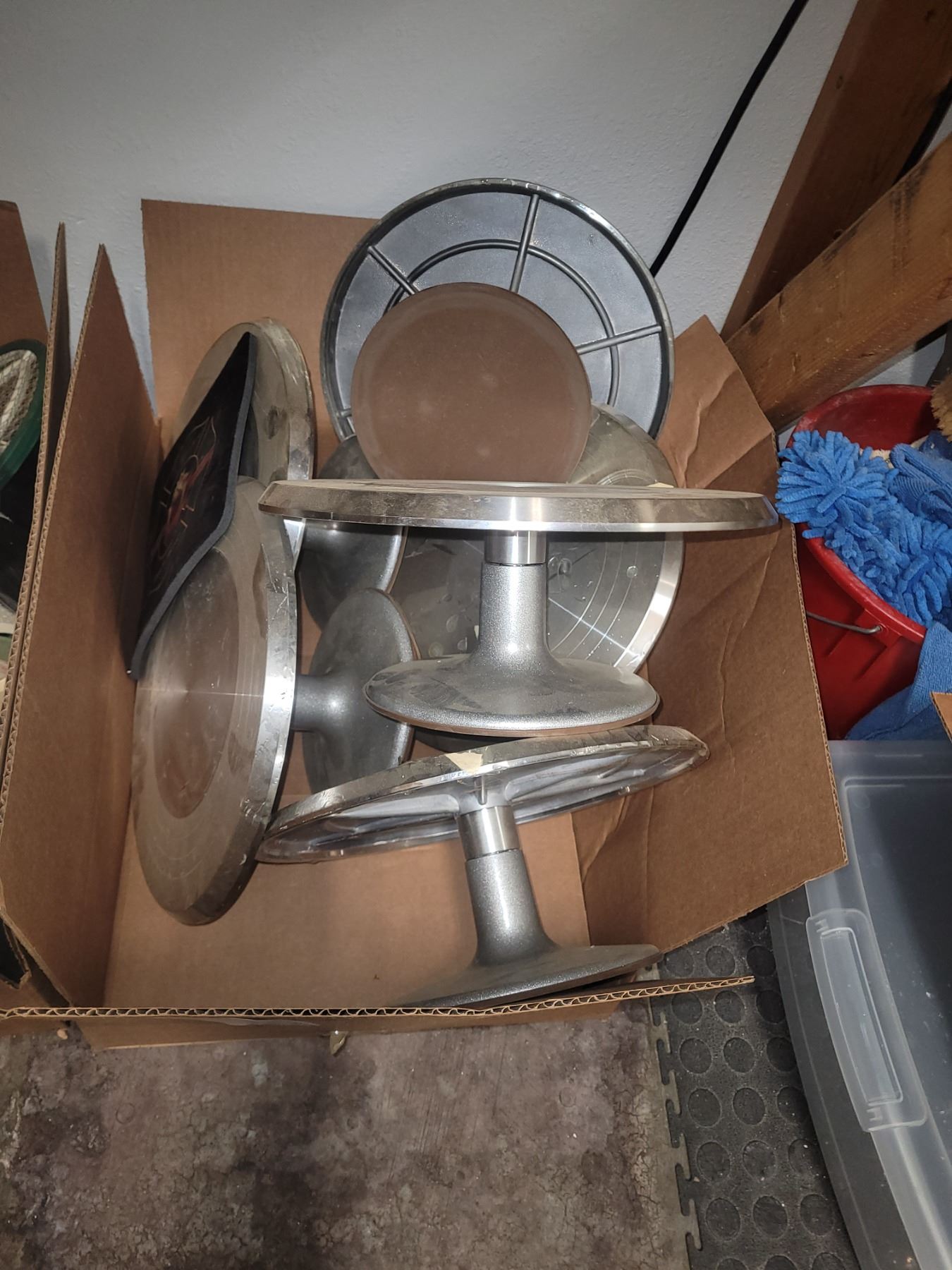 Aluminum pedestal spinners, turners, great for painting items that you can turn without touch, or cake decorating. Pickup at 10 am
