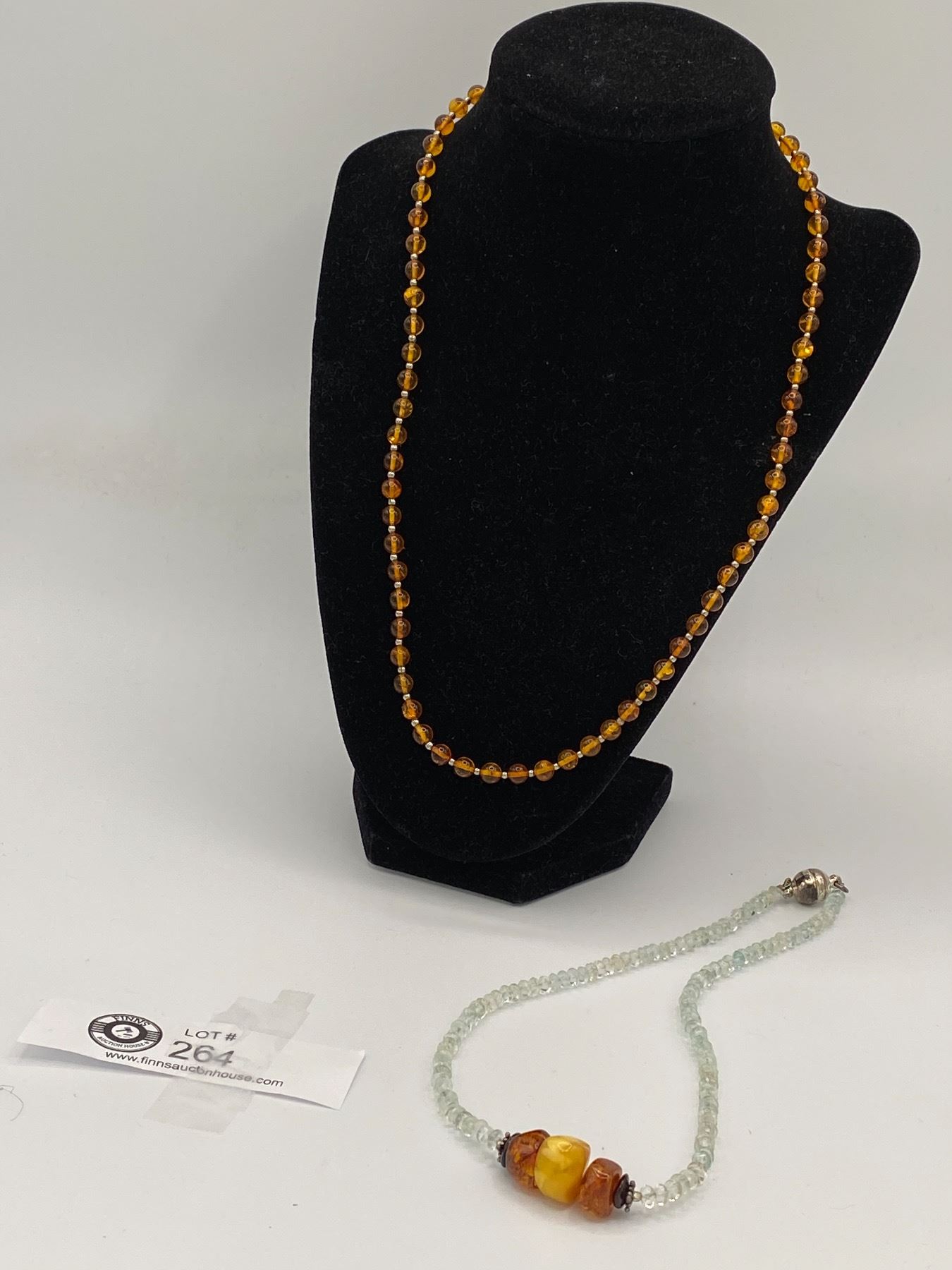 Amber and Pale Blue Gemstone Necklace and Amber Bead Necklace