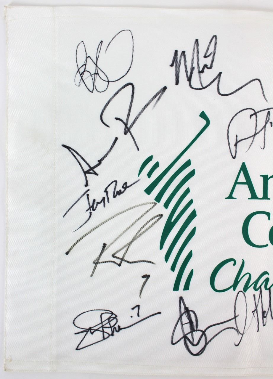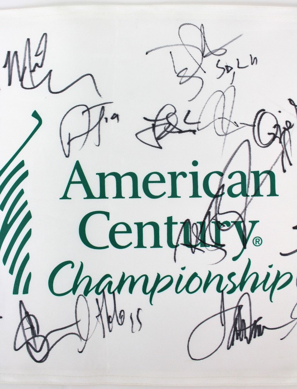 This Autographed American Century Championship Pin Flag has been Personally Signed by ric Gagn‚, Larry The Cable Guy, Terrell Davis, Golden Tate, Chris Webber, Joe Theismann, Tony Romo,Jerry Rice, Sean Payton, Jerome Bettis, Miles Teller, Adam Thielen, Reggie Bush, Ozzie Smith, T.J. Oshie, Doug Pederson, Patrick Peterson. This item is 100% Authentic to include a Certificate of Authenticity (COA) / hologram by Beckett Authentication Services. The authenticity can be verified on Beckett Authentication Services website. Press Pass Collectibles only offers Authentic Autographs by ric Gagn‚, Larry The Cable Guy, Terrell Davis, Golden Tate, Chris Webber, Joe Theismann, Tony Romo,Jerry Rice, Sean Payton, Jerome Bettis, Miles Teller, Adam Thielen, Reggie Bush, Ozzie Smith, T.J. Oshie, Doug Pederson, Patrick Peterson through Signings, In-Person Signings or Private Collections to include a 100% money back Lifetime Authenticity Guarantee.
