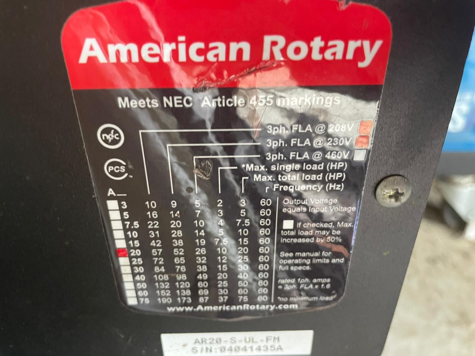 American Rotary AR20 Phase Convertor Used Once for 10 Minutes