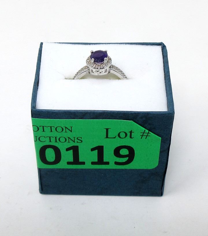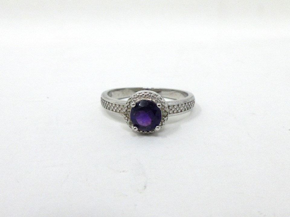 Round cut amethyst & 2 diamonds set in sterling silver. Retail value $260.