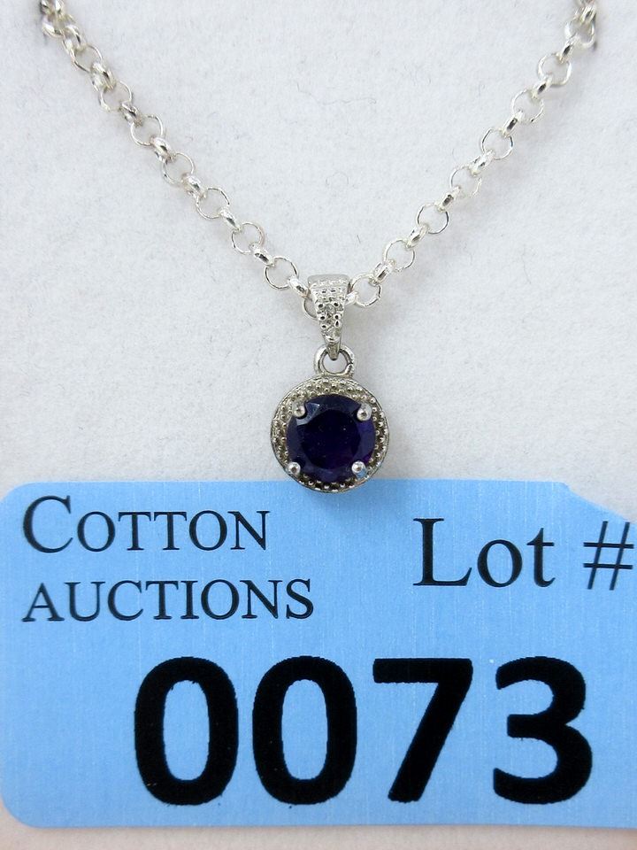 Round cut, 6 mm halo set amethyst. Includes an 18" chain. Retail value $190.