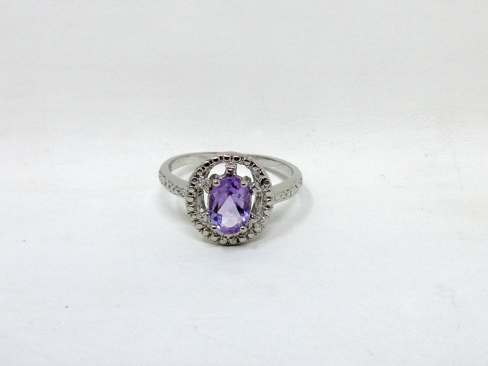Oval cut amethyst & 2 diamonds. Includes a $300 certificate.