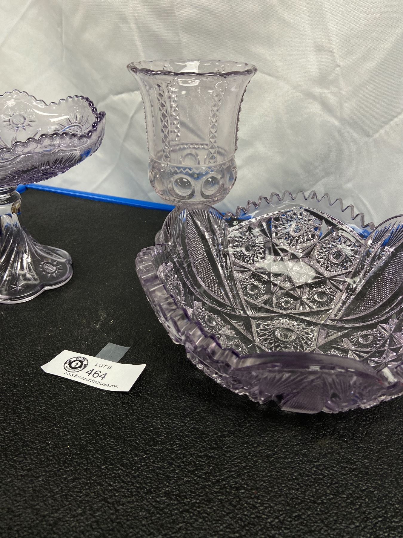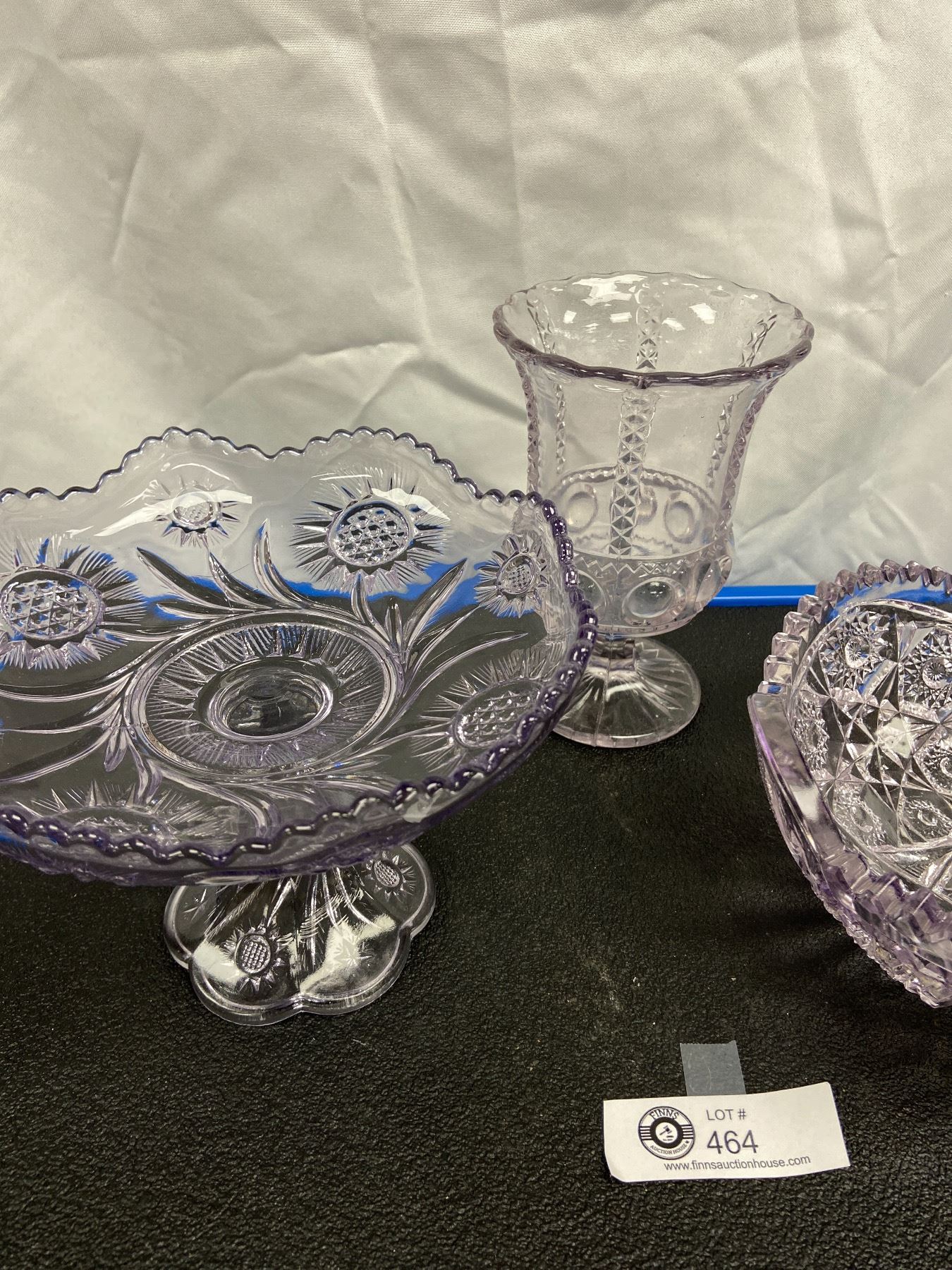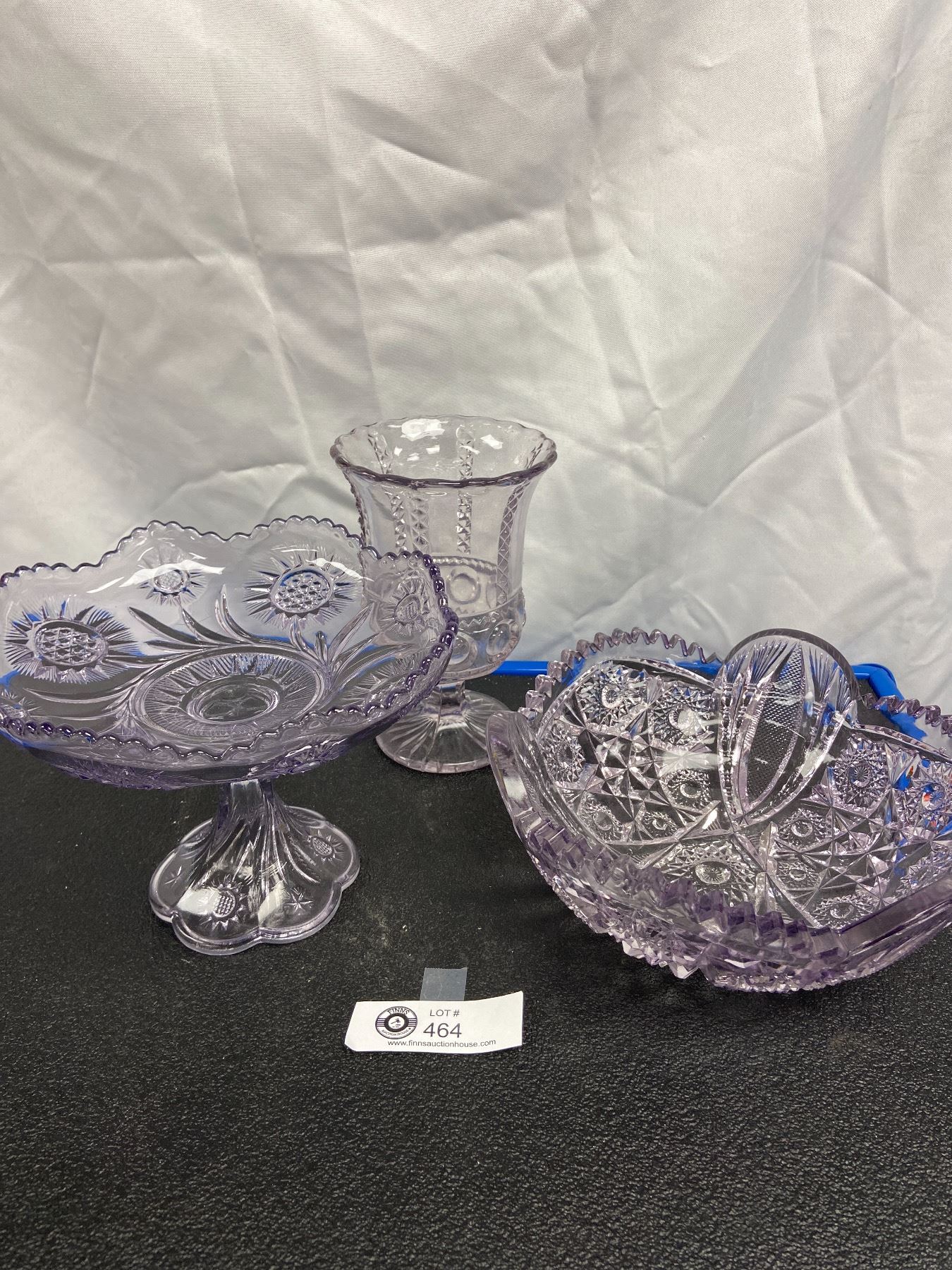 Amethyst Glass Set. Urn, Bowl, Footed Dish