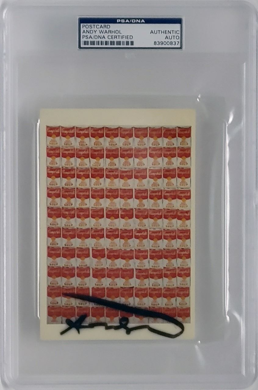 This is a 4x6 Campbell's Soup Postcard Authentic Signed that has been Personally Signed & Autographed by Andy Warhol. This item is 100% Authentic, it comes slabbed and authenticated by PSA/DNA.You can also see the authentication on the PSA/DNA website, PSAcard.com