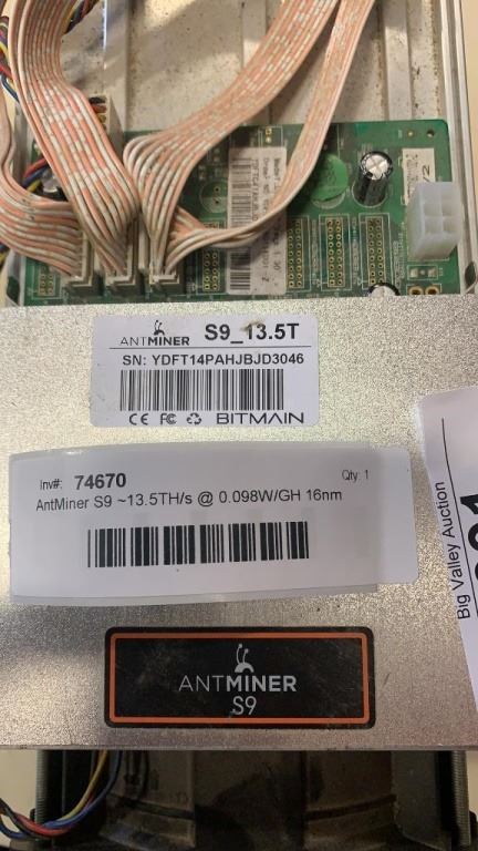 AntMiner S9 ~13.5TH/s @ 0.098W/GH 16nm ASIC Bitcoin Miner with apw3 Power Supply, working