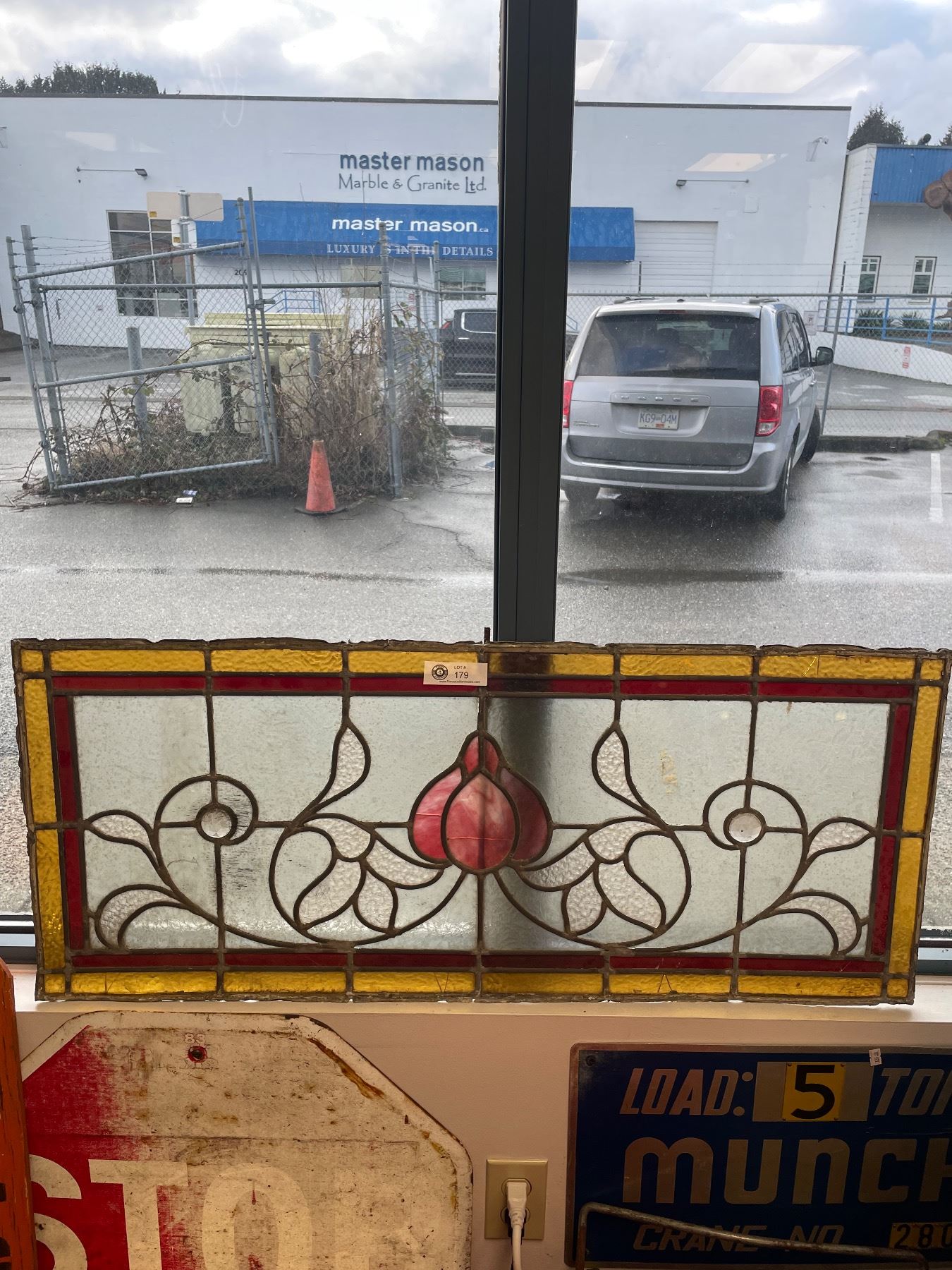 Antique 15 3/4" x 37 1/2" Stained Glass Window Pane. Some Small Cracks In Panels. NO SHIPPING