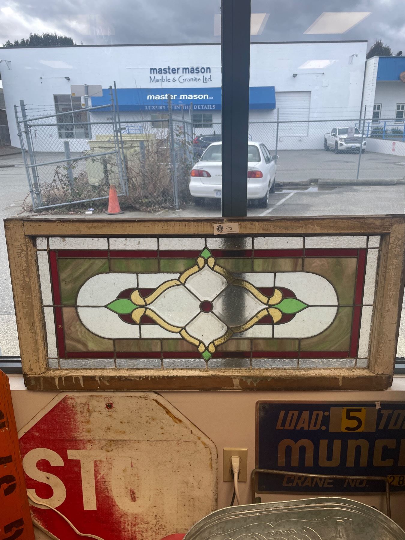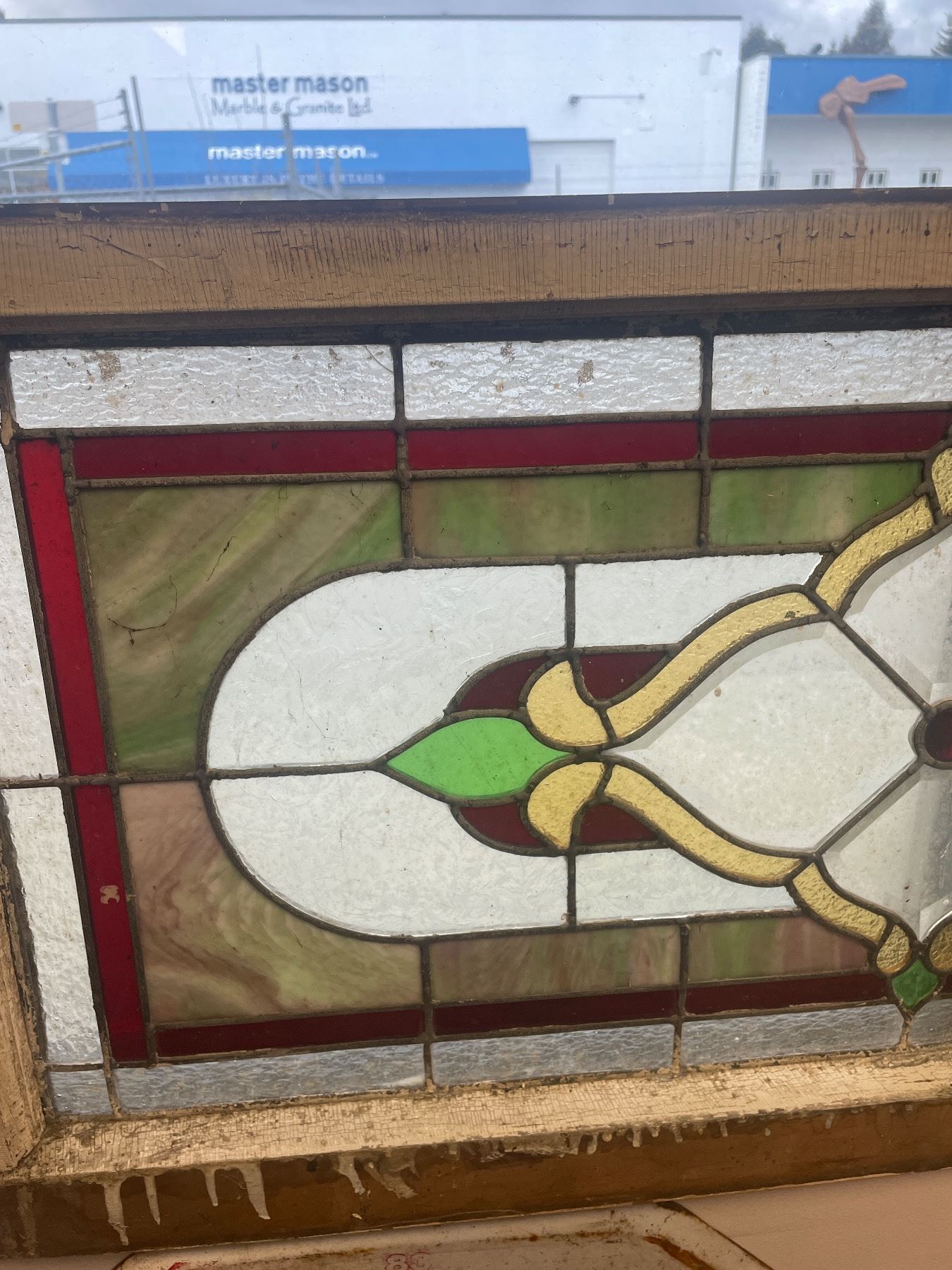 Antique 18 3/4"x 40" Stained Glass Window In Frame. American Made. NO SHIPPING