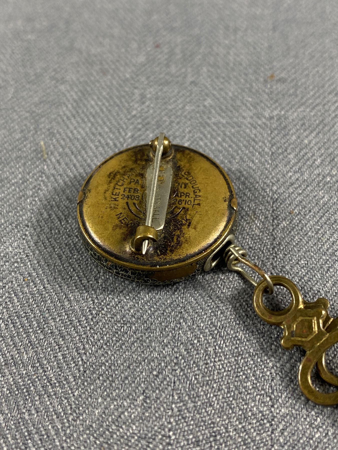 Antique 1910 Ketcham & McDougall Retractable Chain Brooch/ Keys For Pocket Watch USA