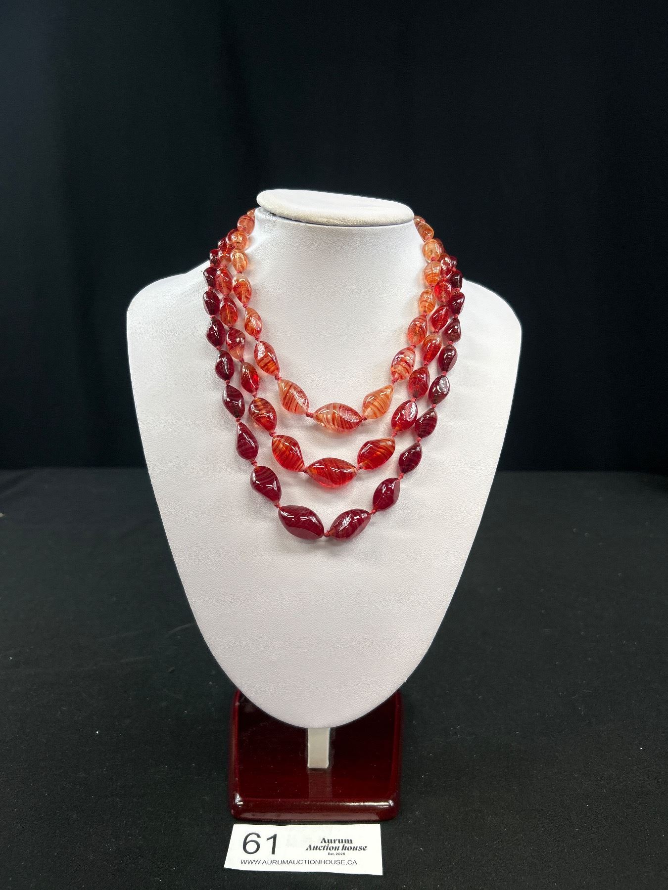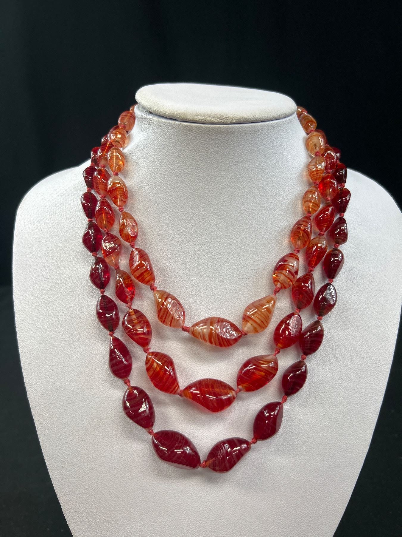 Antique Art Glass Hand Knotted Necklace Matching Gem Set Clasp