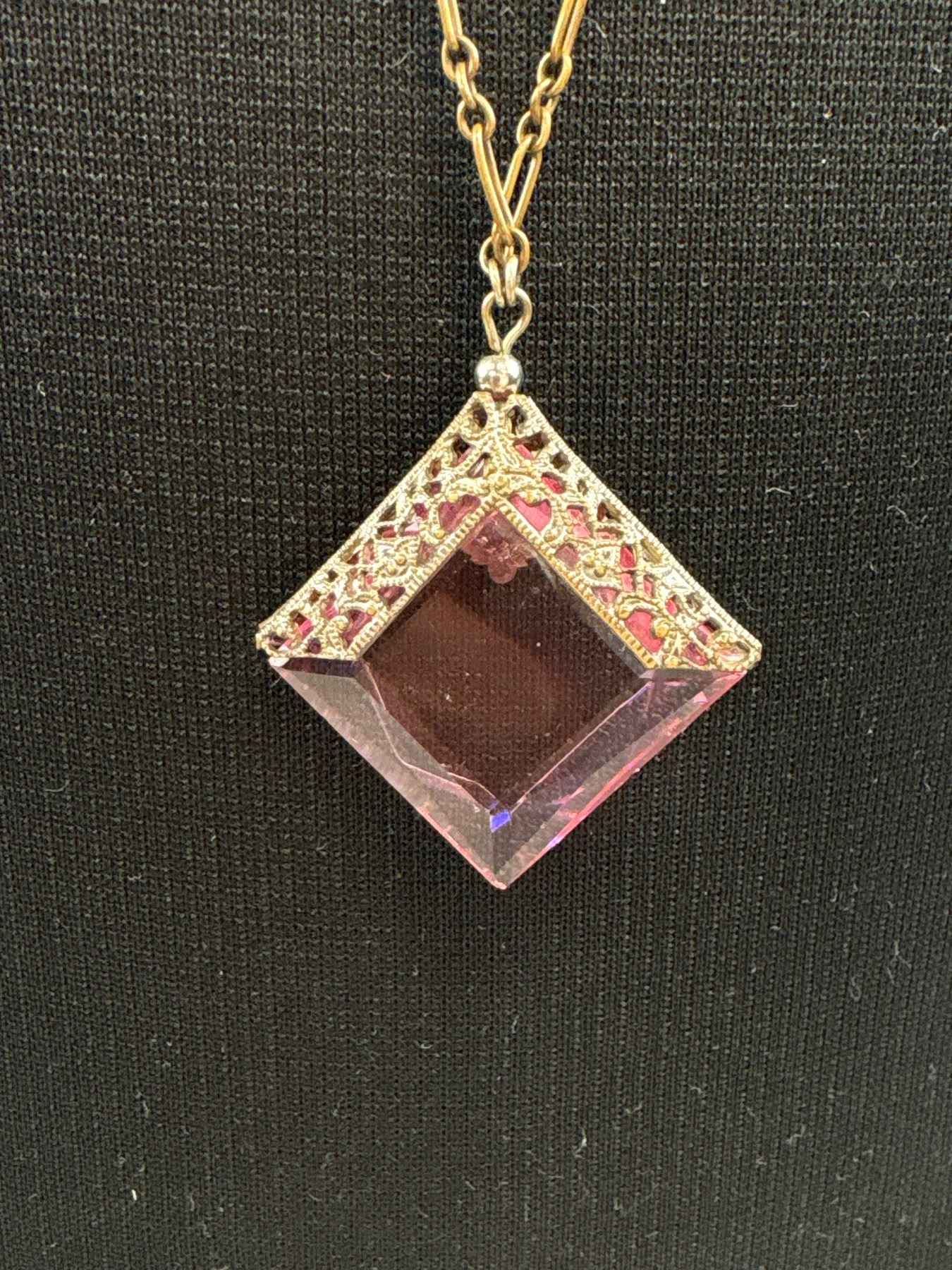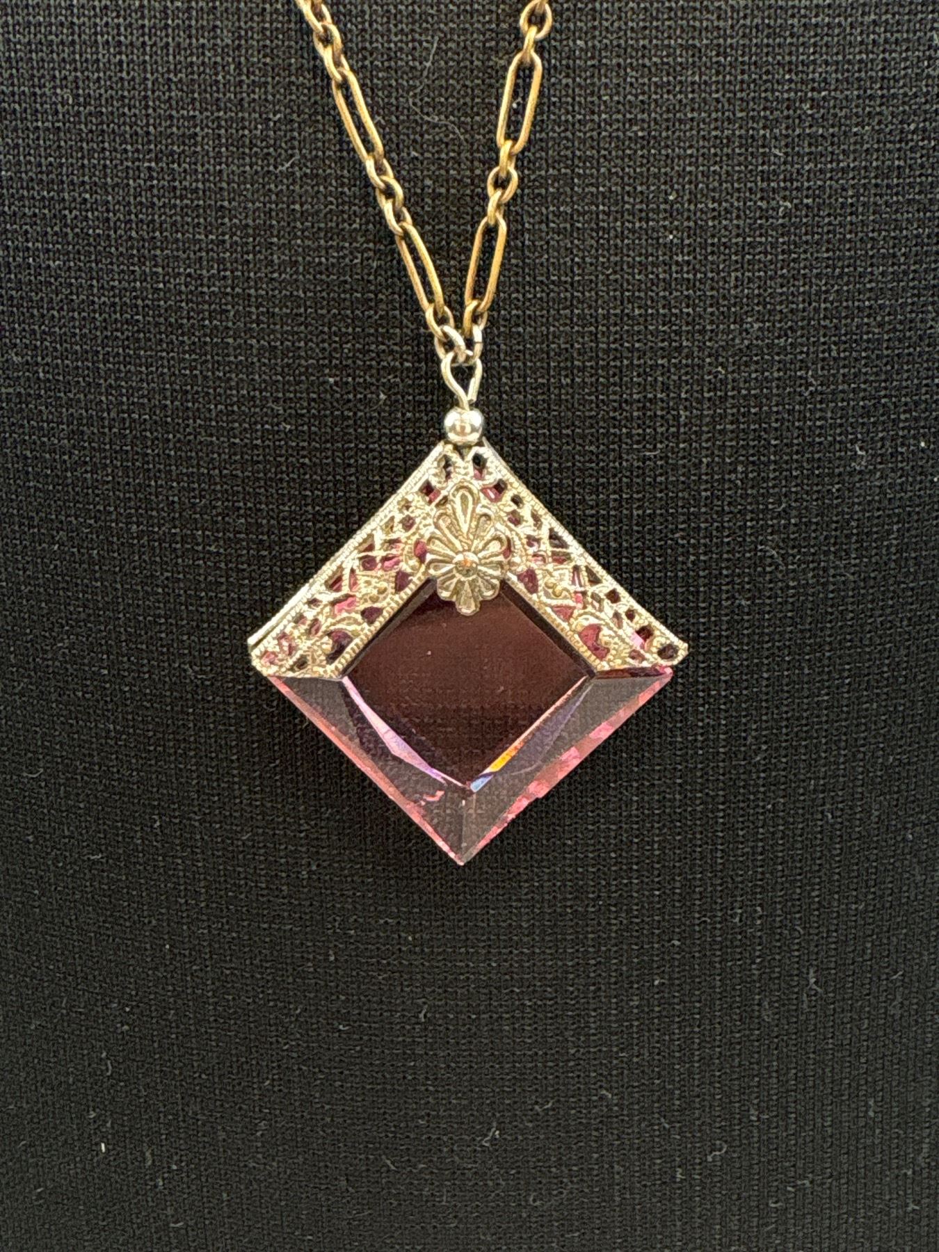 Antique C.1910 Edwardian Pink Faceted Crystal Necklace Exquisite!